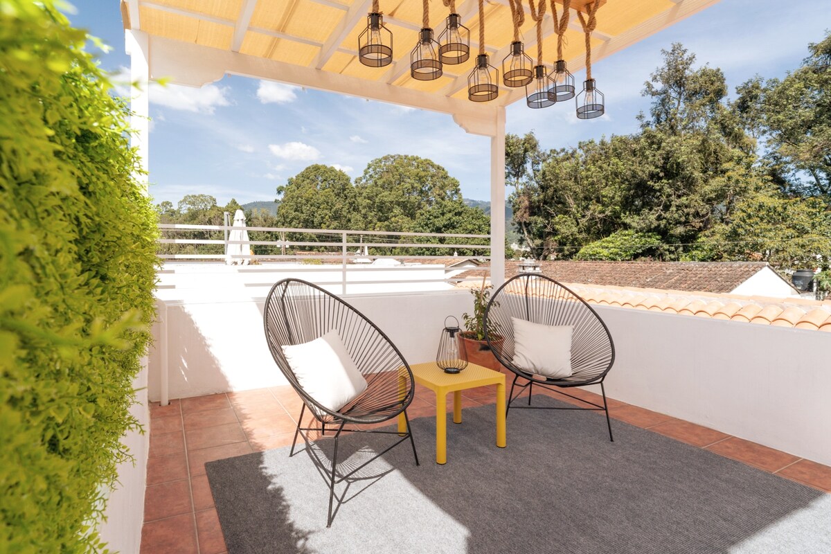 Antiqua Qvatemala yaxınlığındakı sığınacağınızı ✨ kəşf edin. ✨ Sakit və təhlükəsiz sektorda yerləşən bu rahat məkan dincəlmək və dincəlmək üçün idealdır. Möhtəşəm vulkanlara baxarkən təravətləndirmək üçün mükəmməl paylaşılan hovuza çıxışı olan rahat qonaqlamadan zövq alın. Buradan tarix və mədəniyyətlə dolu yaxınlıqdakı füsunkar kəndləri kəşf etmək imkanınız var. Sərgüzəştiniz bu sakitlik vahəsində başlayır.