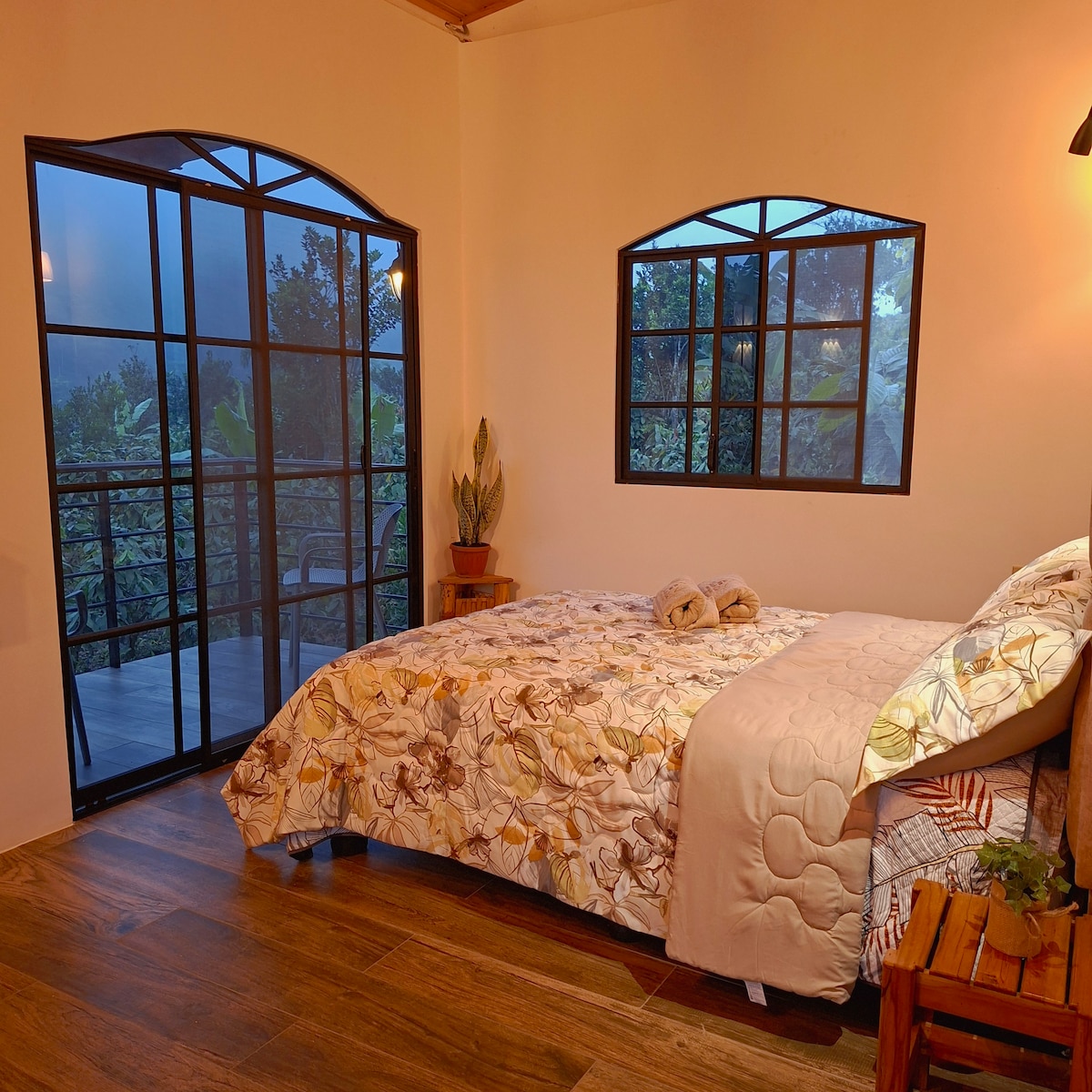Cabaña del Río es un rincón acogedor en medio de un entorno natural impresionante. Rodeada por montañas, un majestuoso volcán y un río a sus pies, este lugar te invita a reconectar con la fuerza y la tranquilidad de la naturaleza. Construida con piedra volcánica y madera, su diseño rústico te brinda una experiencia auténtica y única. Disfruta de nuestras aguas minerales, recorre mágicos senderos y saborea frutas frescas de la zona.