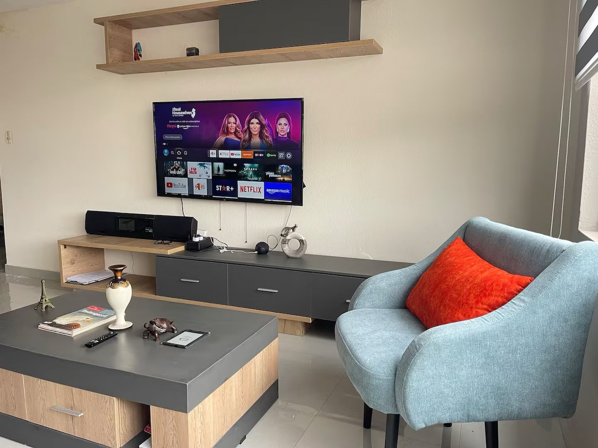 Cómodo y moderno departamento al norte de la ciudad, ubicado en una zona residencial tranquila y segura. A dos cuadras de la Av. República y a 5 minutos de la salida a Quito. Cerca de centros comerciales, restaurantes, parques y todos los servicios necesarios. Ideal para viajes de trabajo, fines de semana o vacaciones. Espacioso, confortable y perfecto para disfrutar en familia o descansar con privacidad. A solo 10 minutos del centro en auto. Excelente iluminación natural y ambiente acogedor.