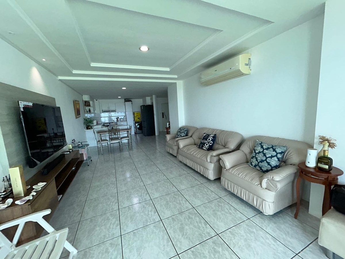 Beautiful spacious apartment in front of the beach. Wonderful ocean view. Located at Malecon Principal of Salinas, close to bars and restaurants. You can enjoy the sea with multiple activities such as swim, waverunner, boat ride, water parks and water sports. Reservations over 28 years old... PARTIES PROHIBITED