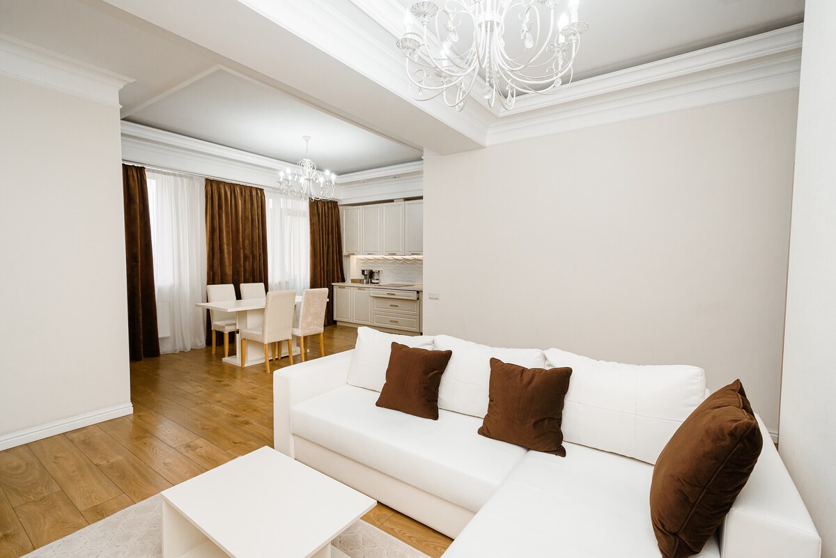 Orange Nest Kişinyovda xoş və rahat qonaqlamalar üçün yaradılmış, müasir dizaynlı mənzildir. ✔ Böyük çarpayılar və rahat döşəklər olan 2 ayrı yataq otağı ✔ Mətbəx, qonaq otağı və hamamda istilik sistemi olan döşəmələr ✔ Avtomatik istilik - həmişə mükəmməl temperatur ✔ Kondisioner (2 ədəd) ✔ Şəxsi yeraltı parkinq – avtomobiliniz üçün təhlükəsiz və etibarlıdır Arena Kişinyov çox yaxındır - konsert və ya tədbirlərə qatılan qonaqlar üçün idealdır.
