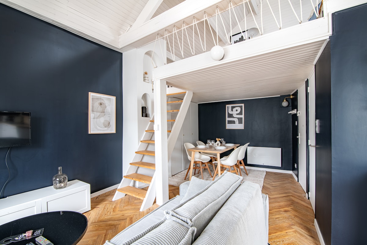 ✨Şole şəhərində yerləşən, müasir və sənaye üslubunda diqqətlə bəzədilmiş L'Atelier des Vieux Greniers studiyasına xoş gəlmişsiniz. 📍Əla mövqe: Mağazalara, restoranlara və nəqliyyata sürətli piyada giriş imkanı olan hiper-mərkəzi şəhərdəsiniz. 🛋️ Stüdiya Vieux Greniers-in siyahıya alınmış binasının birinci mərtəbəsindədir. Sakit küçədə yerləşir və rahatlığınız üçün bütün lazımi avadanlıqları var və sizi böyük təmizliklə qarşılayacaq.