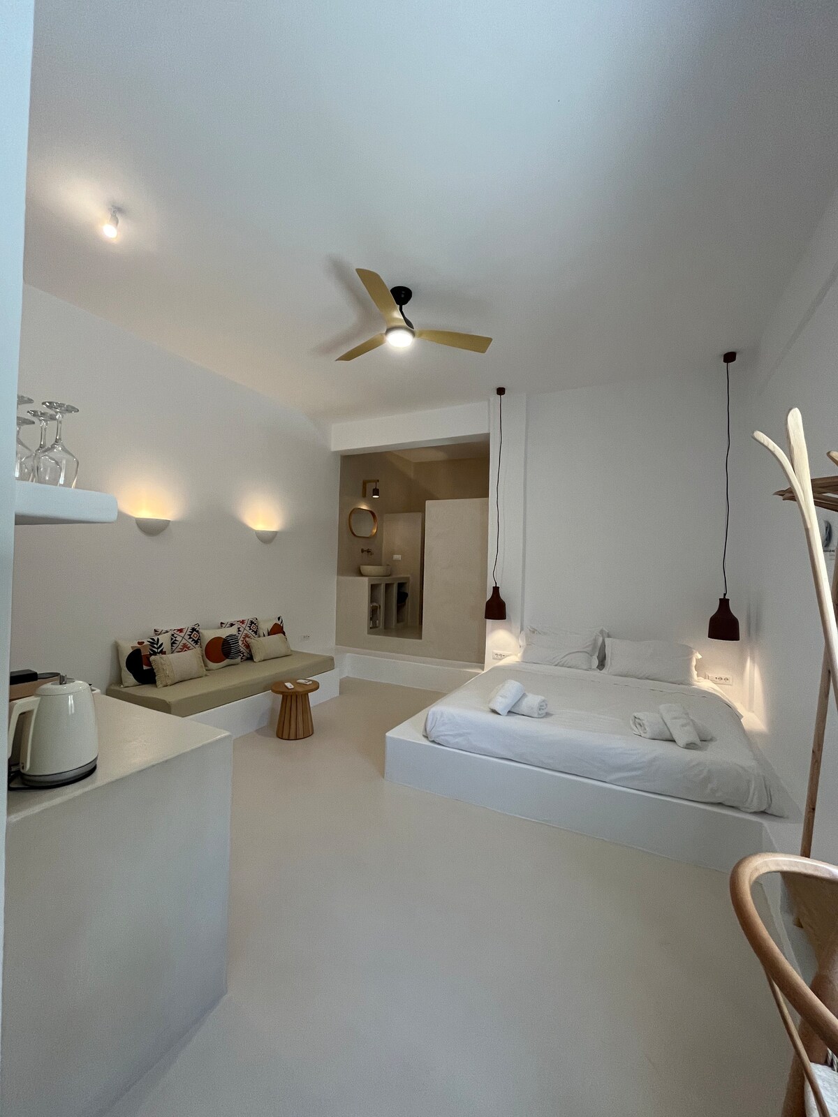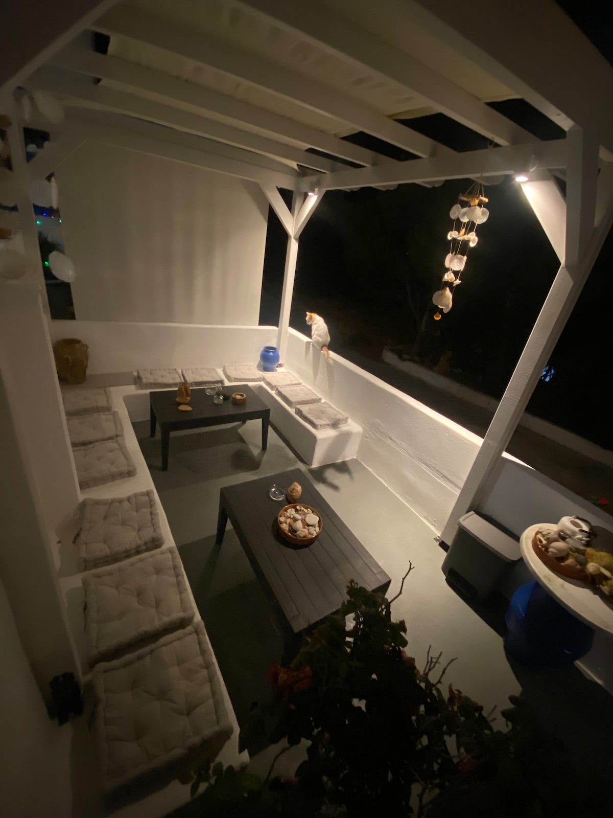 PROPERTY COMPLIES WITH ALL AIRBNB COVID-19 REGULATIONS!! A brand new Studio Apartment located in the graphically beautiful Hellenic island of IOS in the Cyclades complex. The studio resides in the kampos area near the port of Ios and is a 5 minutes walk from the amazing blue flag awarded Yialos beach. It has a spacious and breezy porch with a large built in dinning table and built in couch for you to organize amazing summer dinners or just relax in the summer breeze with your company.