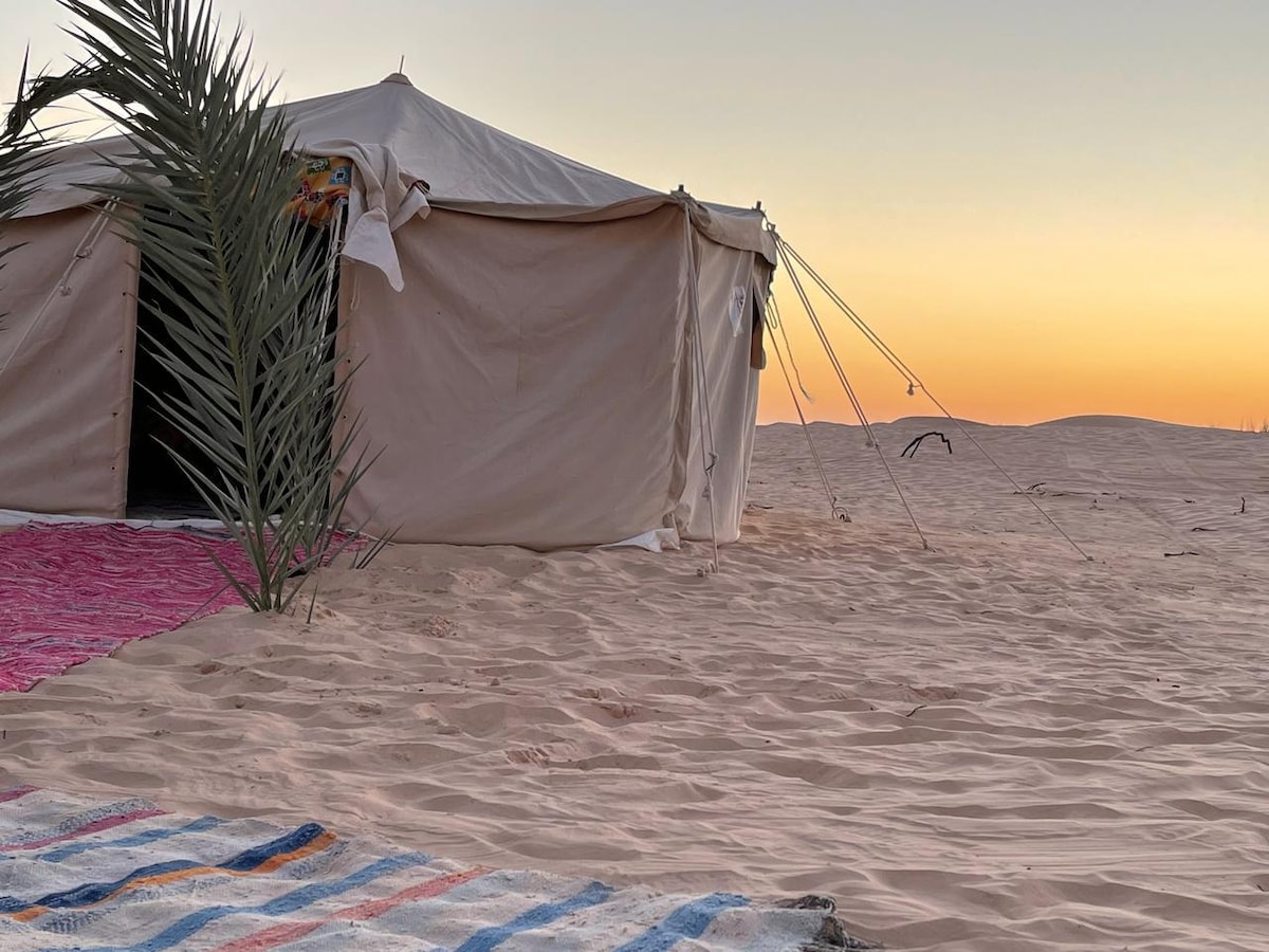 Tunis səhrasının mərkəzində yerləşən bu unikal və romantik tətili sevəcəksiniz. Qeyri-adi Dunes Düşərgəmizdə avtomobillərinizi rahat buraxın və Saharanın mərkəzində yerləşən bivuak və çadırlarımıza çatmaq üçün dəvə gəzintisinə çıxın.