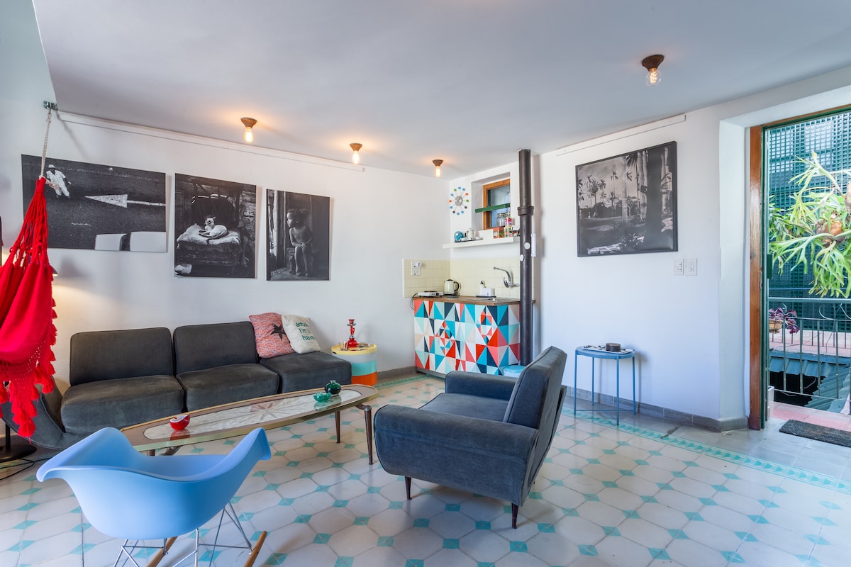 Tarixi Mərkəzin ən gözəl, bərpa edilmiş və təhlükəsiz yerində, emblematik "PLAZA Vieja" nın qarşısında yerləşdirilmiş və çay daşları küçələri (avtomobil yoxdur), barlar, restoranlar, muzeylər və görməli yerlərlə əhatə olunmuş imtiyazlı mövqe. Mənzil rahatlığınız üçün dizayn edilib və 1890-cı ildə tikilmiş müstəmləkə binasının 1-ci mərtəbəsində yerləşir. Heç bir əlavə ödəniş etmədən ləzzətli səhər yeməyi, yerli smartfon + Wİ-Fİ və pul mübadiləsi xidməti alacaqsınız. Qeyri-məcburi hava limanında qarşılama.