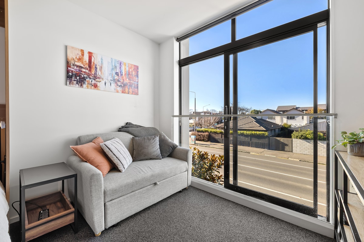 This trendy studio is in a convenient location for exploring our beautiful garden city. It takes: * a minute walk to South City Mall & Chemist Warehouse * 5 min walk to New World Supermarket and Cafe * 10 min walk to Riverside Market and shops * 11 min walk to The Crossing & Christchurch Bus Interchange * 12 min walk to Little High * 15 min walk to Antigua Boat Sheds * 17 min walk to One NZ Stadium & South Hagley Park * 18 min walk to Art Gallery and Museum * 24 min walk to Botanic Gardens