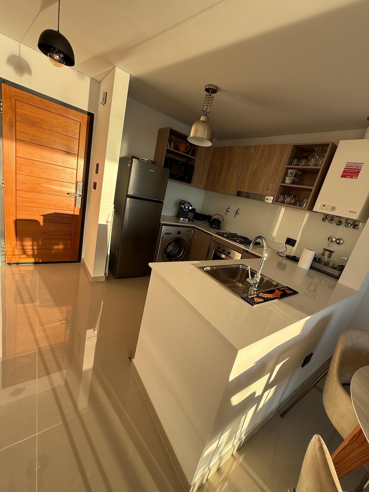 Mənzil Puerto-Madrinin mərkəzində yerləşir və istər balkondan, istərsə də böyük yataq otağının pəncərəsindən körfəzin unikal görünüşünü təklif edir. Qonaqlamanız zamanı ehtiyacınız ola biləcək hər şeyi (bank, turist agentlikləri, 24/7 supermarket, aptek və s.) yaxınlıqda tapacaqsınız Müasir binanın 5-ci mərtəbəsində yerləşən bu bina QR və qapı kodu ilə müstəqil girişə imkan verir.