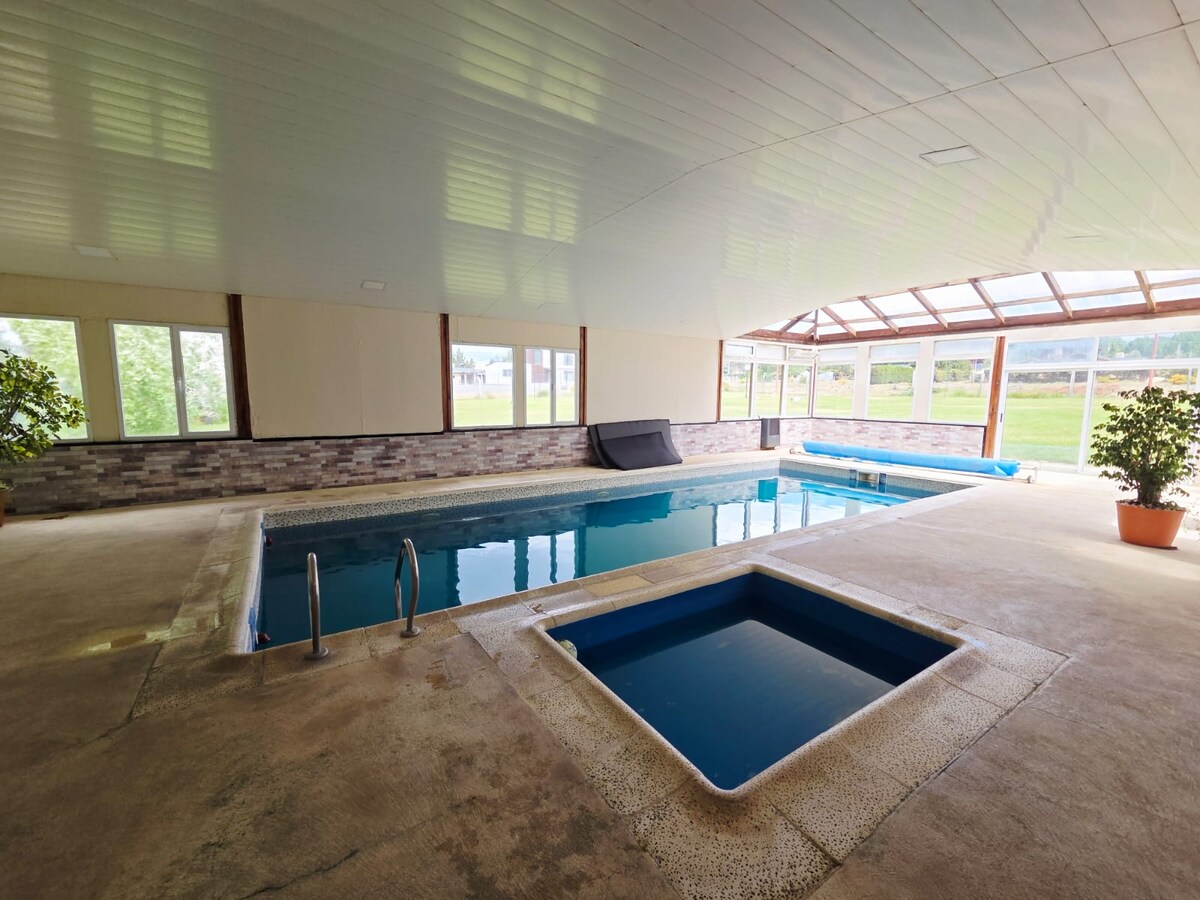 Eksklüziv, sakit və müasir dağ evində bütün ailənizlə birlikdə dincəlin, tam obyektlərdə ekskursiyalarınızın qalan hissəsindən zövq alın; unikal şəlaləsi olan hovuzun yanında barbekü ilə, immensable Pataqon səmasının ulduzlarına baxaraq və yalnız cırcıramaların sporadik səs-küyü ilə müşayiət olunur. Səhər qalereyada yalnız ərazinin unikal kardinallarının və quşlarının səsi ilə müşayiət olunan səhər yeməyi yeyin.