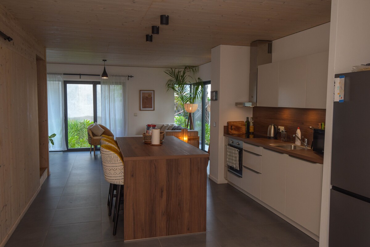 Ayrıca və rahat olan Studiya çimərlik evinin 1-ci mərtəbəsində yerləşir, okean mənzərəli və ayrıca girişi var. Çimərliyə və okeana baxan böyük terrası var, səhər günəşin doğuşunu seyr edərkən bir fincan qəhvədən zövq almaq üçün mükəmməldir. Yataq otağı, isti suyu və mətbəxi olan vanna otağı, hamısı özəldir. Pulsuz limitsiz Wi-Fi. Bir restoran evin 2 addımlığındadır və ərzaq məhsulları üçün kiçik mağazalar gəzinti məsafəsindədir. Hava limanında qarşılama -up və yola salma (əlavə ödəniş)