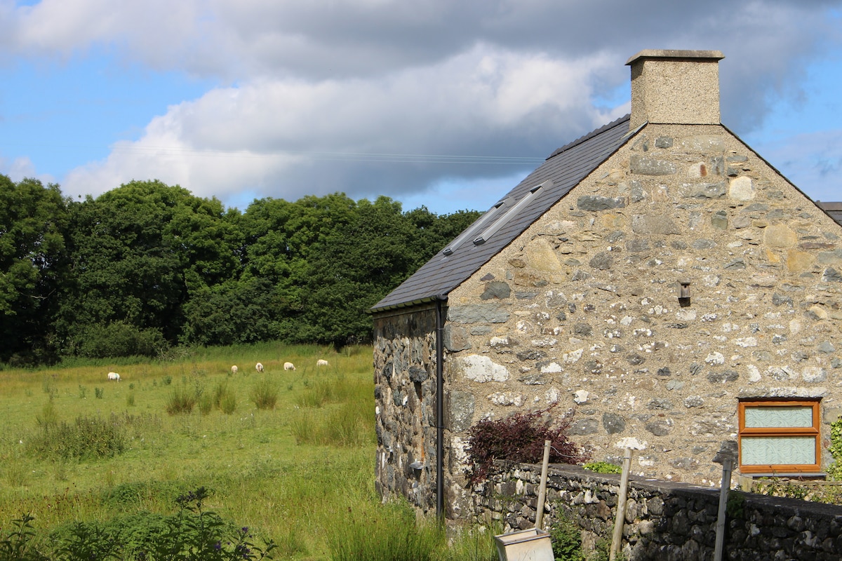 You're assured a warm welcome to this beautifully restored small barn, now a cosy cottage with exclusive use of all year round hot tub! Stunning location bordering Snowdonia (10 mins walk to Park). On clear days Snowdon, Yr Wyddfa, herself is in full view. Free Electric car charge. Close to castles, Llyn Peninsula, much beautiful coastline, stone's throw from Anglesey & more! Suitable for couples/one individual. Come, pamper yourself on a restorative break, explore a glorious area, North Wales!