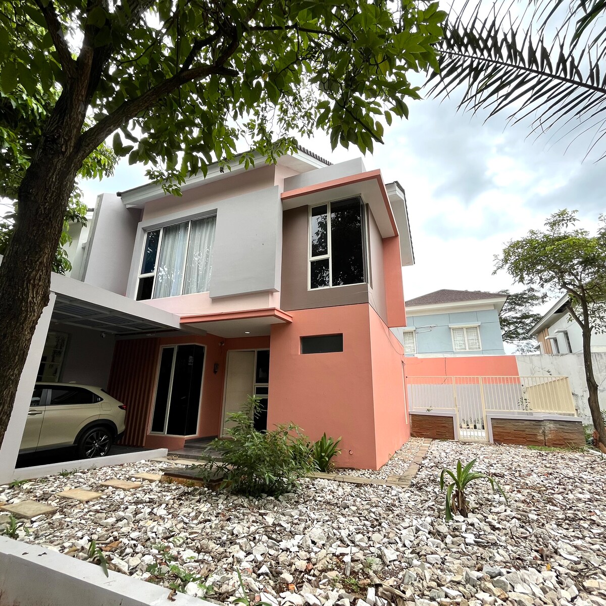 Newly renovated Designer House, located in a smart city development area by a renowned Japanese property developer in the heart of Cikarang Industrial Estate with a strategic location, calm and safe environment. The fully-furnished 85 sqm 2-storey and 3-bedroom house is suitable for a family of 4 or 5 people. The amenities including : 2-cars carport, Living, Dining, Kitchen, 2 bathrooms, small backyard, storage room and balcony. We are looking for a long term tenant for minimum 1 week of stay.