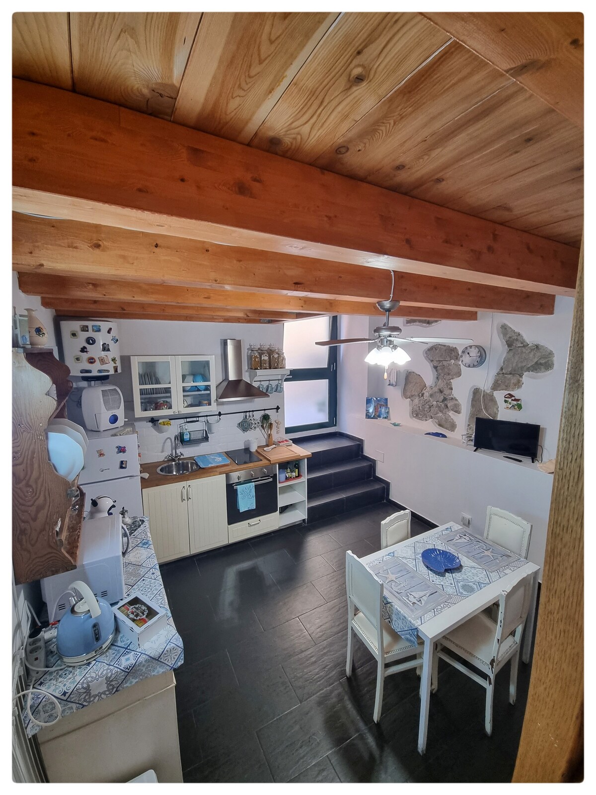 Stansiyadan 5 dəqiqəlik məsafədə mərkəzi ərazidə döşəmə loftu. Yaşayış üçün açıq verandası var. Tam təchiz olunmuş mətbəx, internet kanalları olan televizor (Netflix, Prime və s.). Üstü örtülü böyük açıq hava sahəsi də velosipedləri park etmək üçün istifadə edilə bilər. Ev heyvanları yönümlü. Yerli restoranlarla razılaşmalar. Şəhərdən, ətrafdan və gözəl dənizimizdən daha yaxşı zövq almaq üçün xüsusi paketlər yaratmaq imkanı. Parkinqə pulsuz keçid