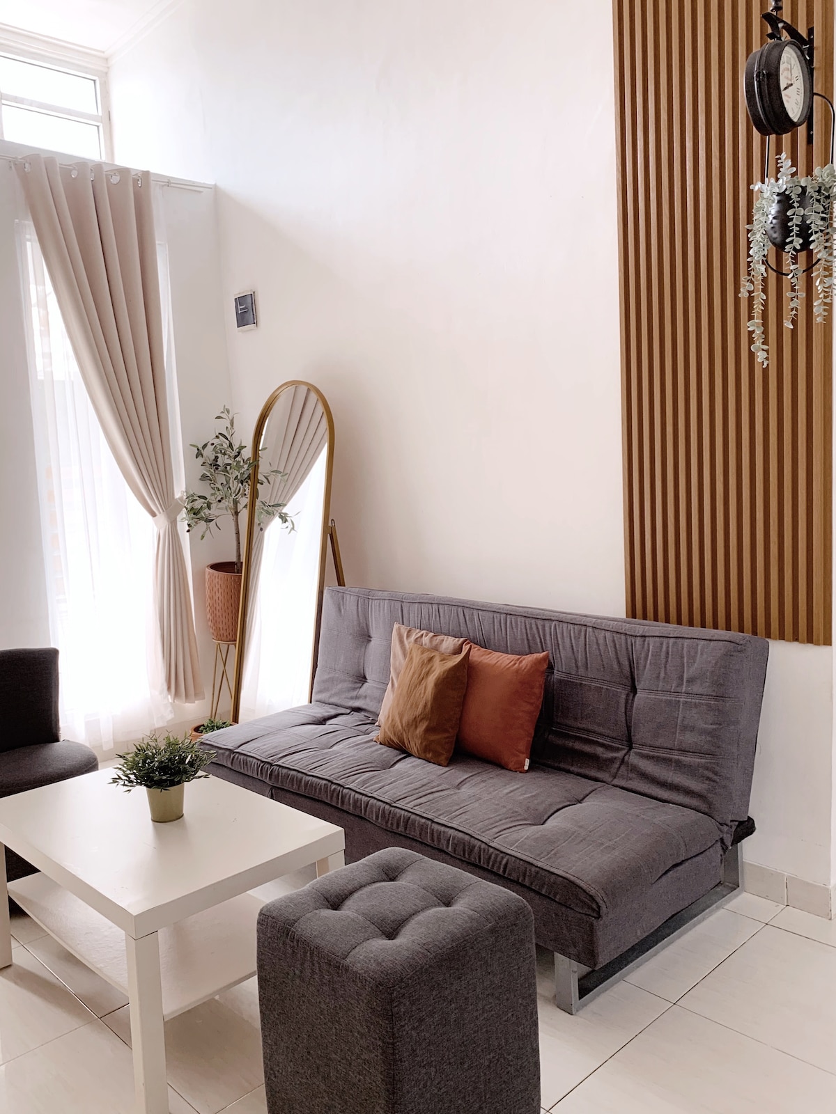 Bersantailah bersama seluruh keluarga di tempat menginap yang tenang n instagram able,tempat ini cocok utk tempat bersantai anda dan keluarga ..tenang dengan design modern..2 kamar tidur dengan AC ,ruang tamu,ruang santai n dapur lengkap👍