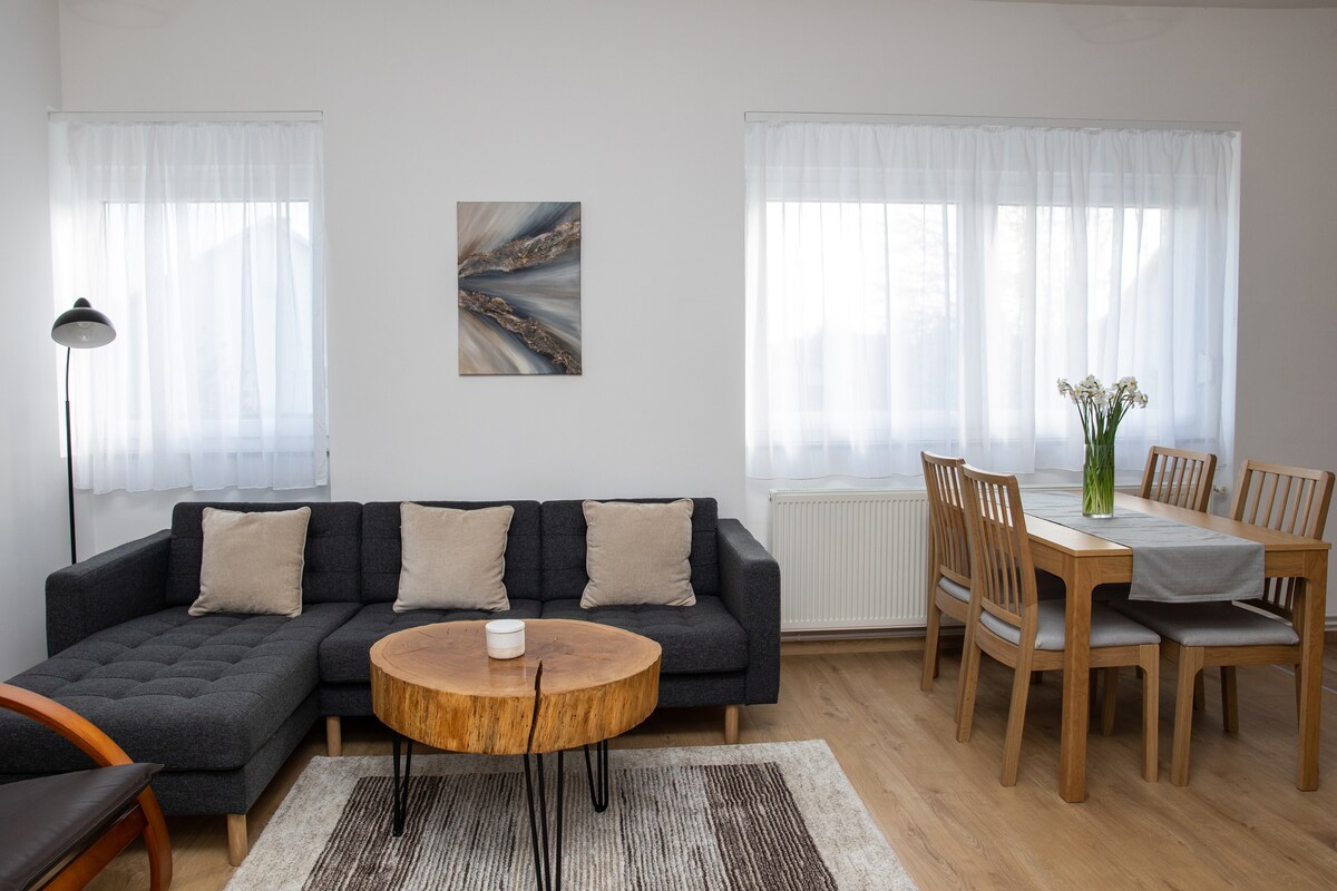 One bedroom apartment (33 m2), renovated, in a quiet and peaceful street will fully meet all your expectations. Private parking in the yard, central heating and air conditioner, high-speed optic internet. Apartment meets the conditions for 3* by equipment and services according to EU standards. From main city square is 3 km. 200 m from apartment is big supermarket Kaufland, DM and market. Check-in/check-out yourself. For 1 or 2 adults or 1 adult and child (12+ years). Sojourn tax is included.