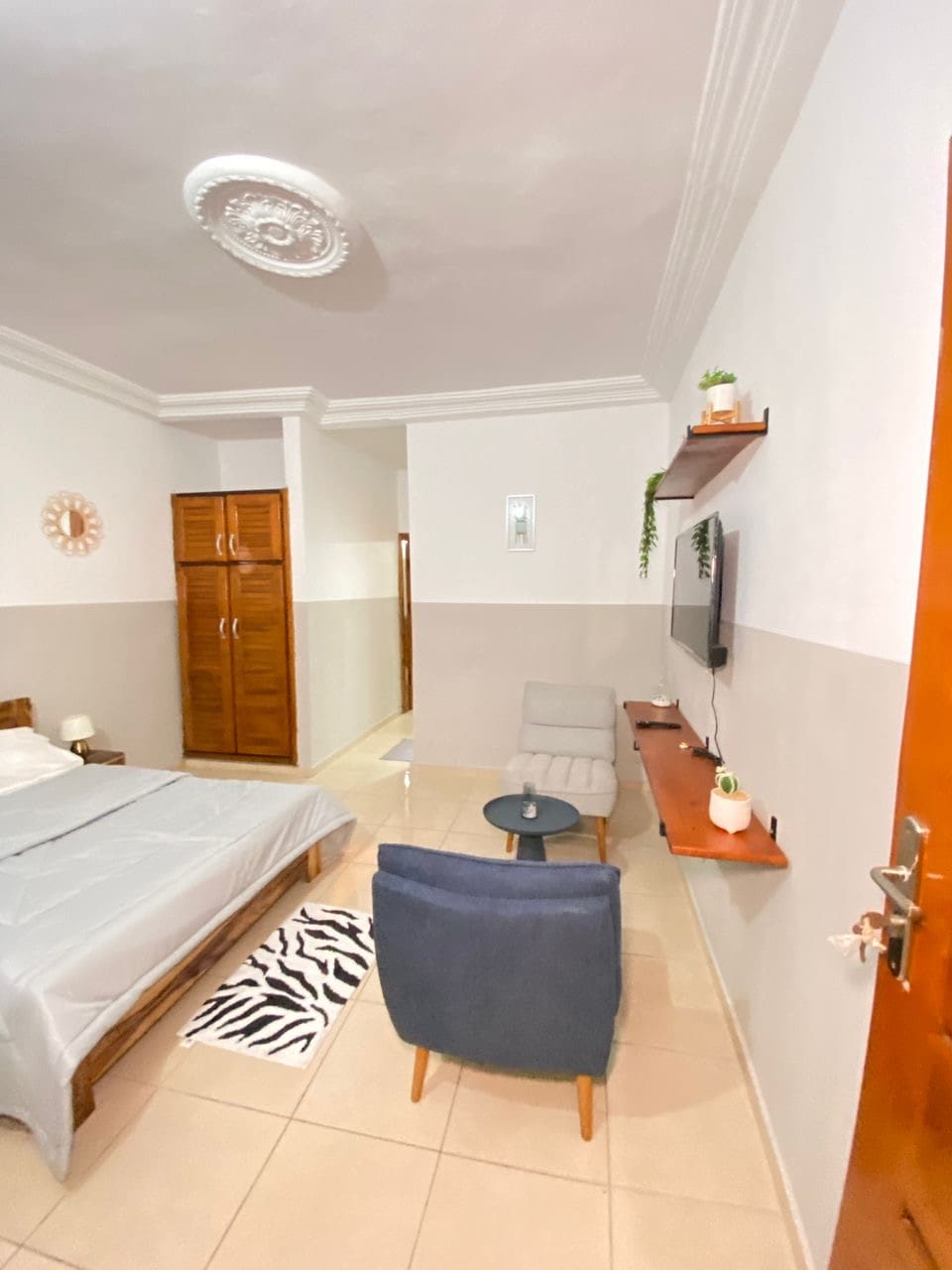 Evinizə xoş gəldiniz! Abidjan Mall-dan 10 dəq məsafədə, 1-ci mərtəbədə yeni, təhlükəsiz, geniş qonaqlama yeri. Apteklərə, restoranlara, supermarketlərə yaxındır. Buraya aşağıdakılar daxildir: - Avtomatik kilid ilə giriş -Qarderob və təhlükəsiz qapalı parkinq 24/7 - Möhtəşəm, rahat otaq -Linen paltaryuyan maşını -Özəl balkon - İsti su və dəsmallar təmin edilir - Netflix,Wi-Fi, Kanal +,A/C, Pulsuz Elektrik - VGA və ya HDMI kabelləri ilə əlaqə qurmaq üçün kompüter ekranı olan masa -Qeyri-adi mətbəx - Ağcaqanad mənfur