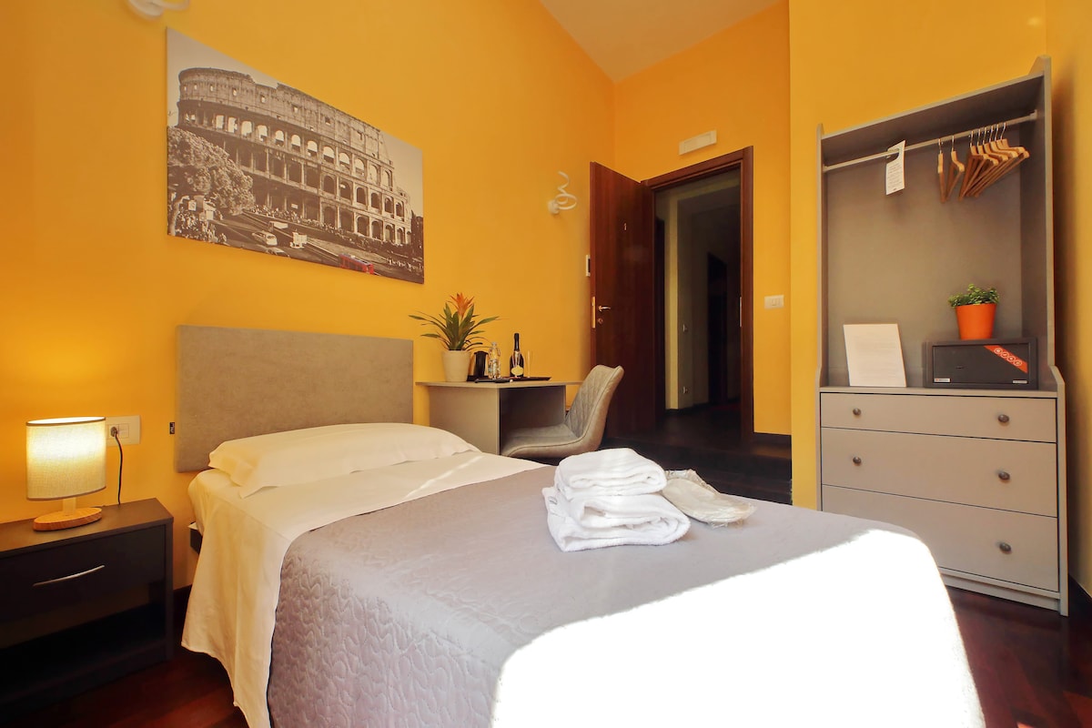 düz ekranlı televizor, mini bar, fen, seyf, Wi-Fi, yaddaş köpüklü döşəklə təchiz edilmiş tək yataq otağı bir nəfəri yerləşdirə bilər. Səmimi, təhlükəsiz və trattorias, restoranlar və qeyri-tourist pizzaları olan məhəllə. Avtobus dayanacaqlarına yaxın və metrodan 700 metr məsafədə strateji mövqe. 10/30 dəqiqə ərzində Paytaxtın ən populyar yerlərindən bəzilərinə gedə bilərsiniz.