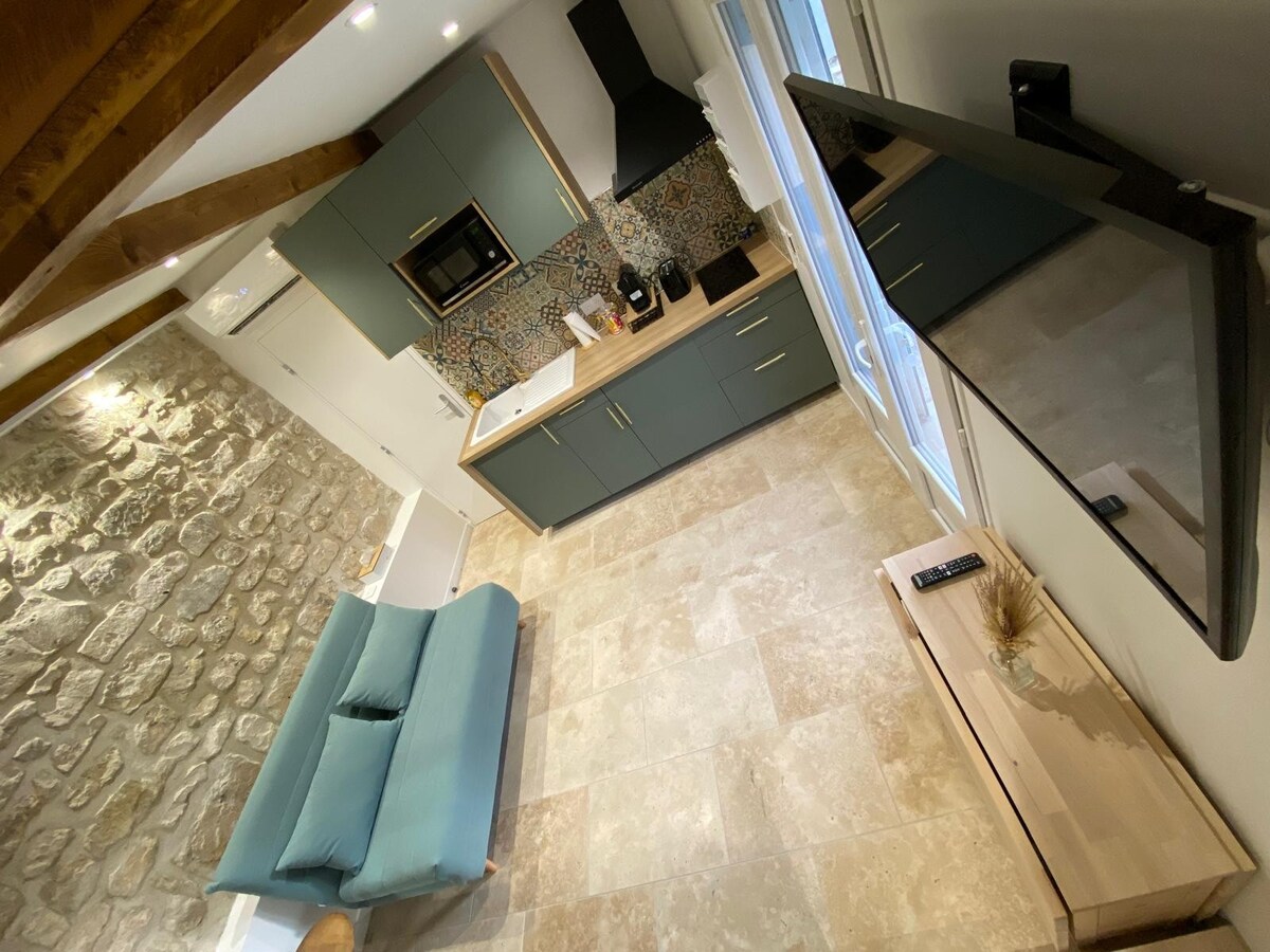 Şəhərin mərkəzində gözəl 33 m2 studiya. 7 gün və ya daha çox - 20% 28 gün və ya daha çox -30% - Tamamilə təmir edilmiş, çox parlaq, çarpaz işıqlar və həddindən artıq təchiz olunmuş yaşayış yeri. - İlk gecəniz üçün səhər yeməyi daxildir. Yataq çətiri 👶🏻 -Netflix - Lifli İnternet - Bir yolla şəhərin mərkəzinə, eləcə də qalaya yapışmış rahat bir xiyabanda yerləşir. - Ödənişli parkinqi olan xiyaban və 100 metr məsafədə pulsuz qala parkinqi. - Piyada: Qəsrdən və şəhər mərkəzindən 2dəq məsafədə. Stansiyadan 10 dəq məsafədə