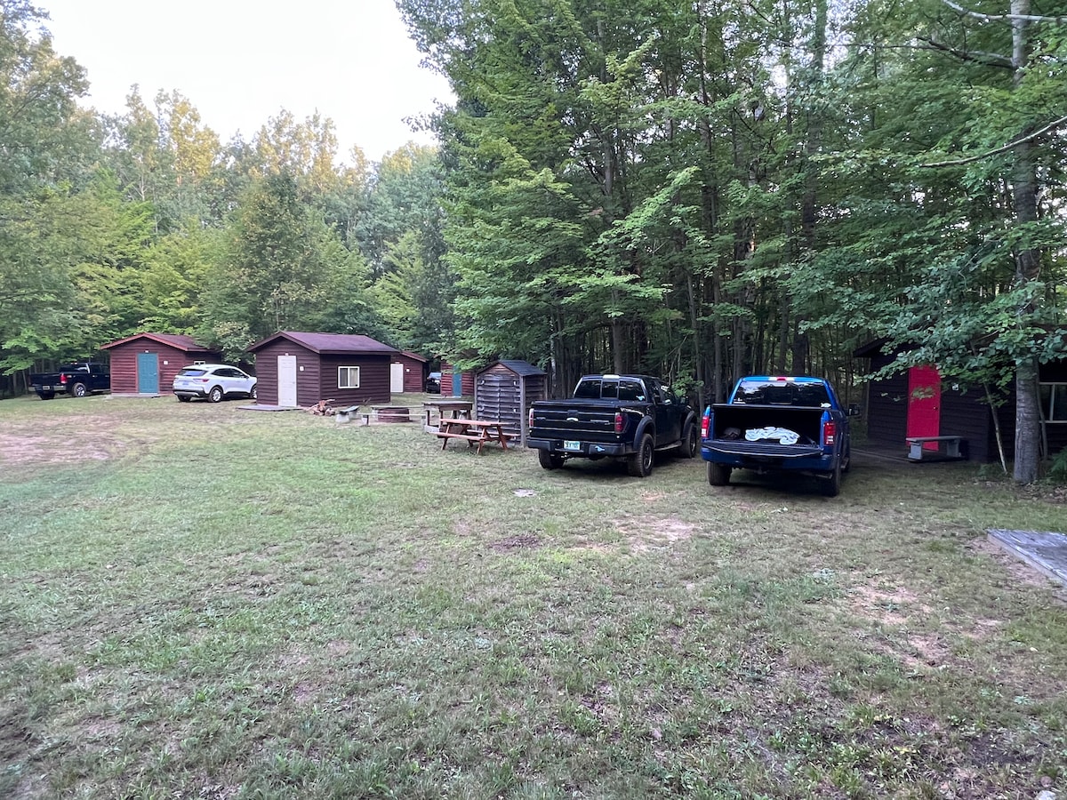 Bu füsunkar, tam təmir edilmiş mini giriş kabinəsi kanoe və tübinq üçün Muskegon çayından cəmi 1/2 mil məsafədə 10 meşəlik ərazidə yerləşir. Sonsuz macəra üçün Leota cığır sistemlərinə və minlərlə hektar dövlət ərazisinə yaxındır. Xüsusiyyətlərə açıq havada bar, cakuzisi olan dirək samuru, açıq havada televizor, səs sistemi və böyük tonqal sahəsi daxildir. Düşərgə və qoşqular üçün çoxlu yer. 20+ gölə yaxın, Harrisona 10 dəq, Cadillac-a 30 dəqiqə - təbiətsevərlər üçün mükəmməldir!
