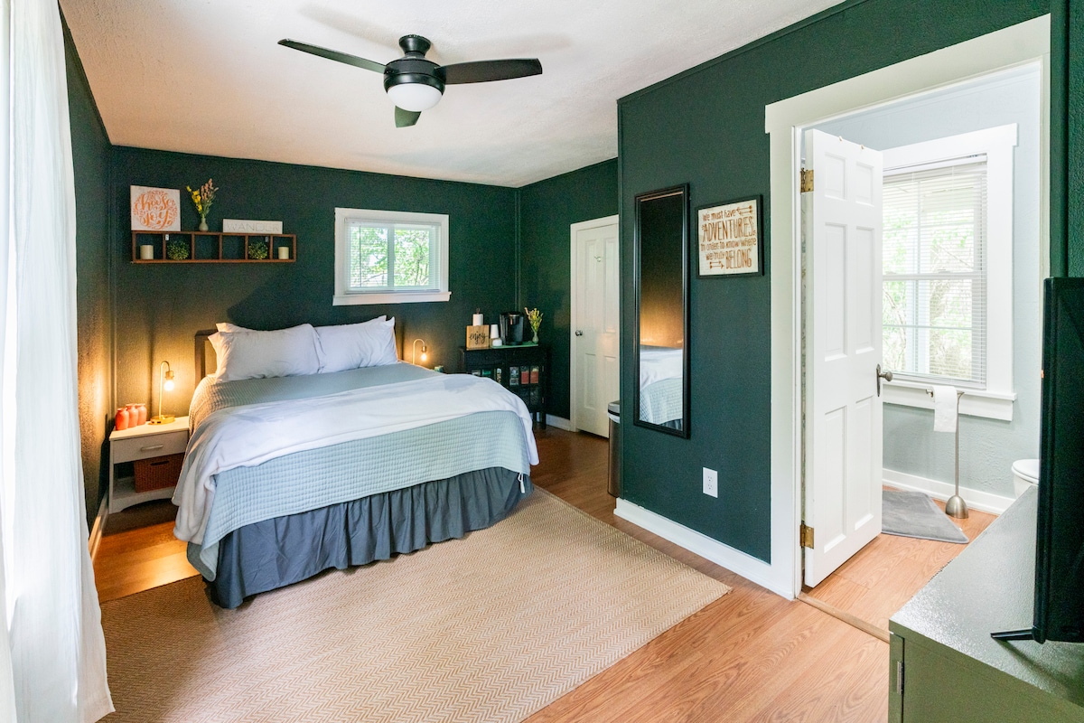 Qırmızı və hazırlığa xoş gəlmisiniz! Ev bütün mətbəx ehtiyacları ilə təmin olunub. Hər iki yataq otağında otel və dekorasiya kimi gözəl ev hissləri olan sakit kondisioner qurğuları var. Döşəklər və lüks üslubda yastıqlar qonaqların sevimlisidir. *bütün TV-lərdə roku qonaq rejimi * *məşq velosipedi* *arxa həyətdə buxarı sahəsi * *ağıllı kilid girişi* *amazon echo dot* * ev heyvanları üçün hasarlanmış ərazi * *pulsuz SU şüşələri* *keurig* *quruducu döşəkağılar və podşipniklər*