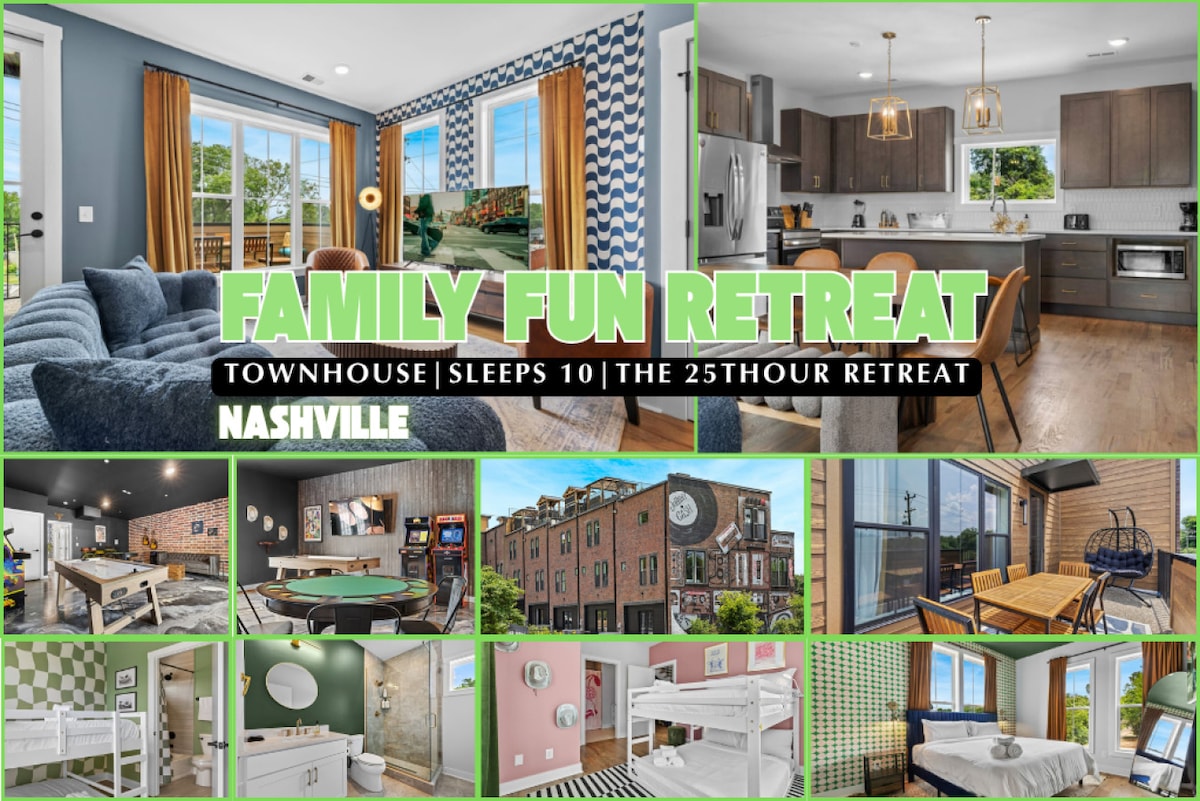 Qrupunuzu Brodveydən cəmi 10 dəqiqəlik məsafədə yerləşən bu unikal Neşvill istirahət məkanına gətirin. Bu dəbli 4BR evi rahatlıqla 12 nəfərlikdir və unikal imkanlarla yüklənib: od çuxuru, televizor və şəhərin mərkəzi mənzərələri olan dam örtüyü, pinq-ponq masası və karaoke olan oyun qarajı. Musiqi mövzulu dekorlar ab-havanı daha da artırır və onu lüks, əyləncə və Neşvill enerjisini bir unudulmaz qonaqlamaya qarışdırmaq istəyən bakalavrlar, ailələr və qruplar üçün mükəmməl edir. Sərgüzəştinizi bu gün bron edin!