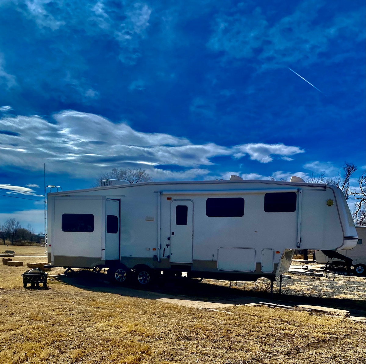 The Prairie Nomad at Nomad Landing 🌾 Cozy camper in Clayton, NM that sleeps 4 with a full bathroom and private fire pit. Enjoy quiet High Plains views, beautiful sunsets, and a peaceful stay close to town — comfort, simplicity, and wide-open skies. ✨🔥
