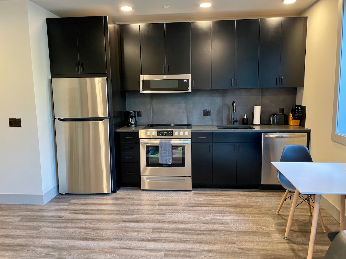 This new build condo is in the heart of downtown Traverse City! Walk to all of Traverse City's restaurants, breweries, distilleries, shopping, and the beach! With a cool urban design, this condo offers one bedroom and one bath. Its open concept design boasts a living area, full kitchen and in unit washer and dryer. Sleeps 4 people with a king bed and queen pull out mattress. The location offers easy access to both peninsulas which are home to over 40 different wineries. On site city EV Chargers