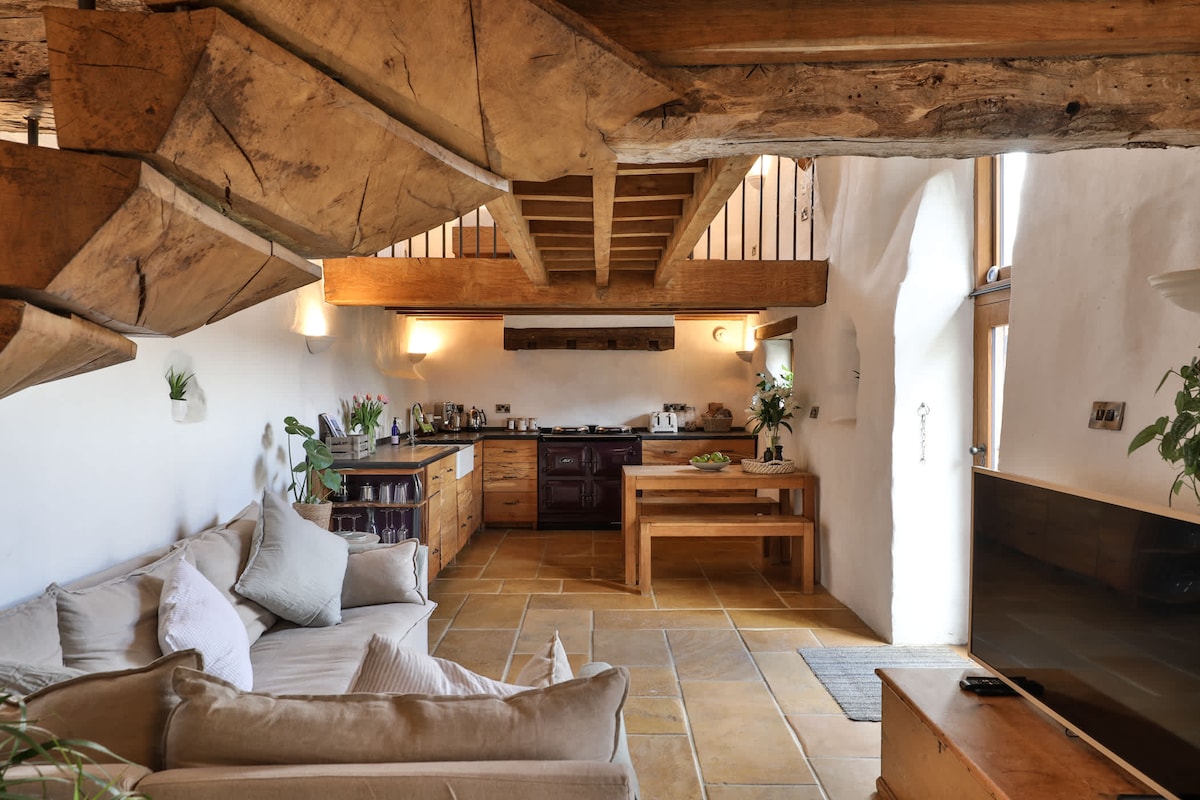The Granary is a cosy cottage for two in a beautiful hamlet that is part of the North Devon AONB. The stunning beach of Welcombe Mouth is within walking distance, starting from the public footpath at the bottom of the garden. Tucked behind Linton farmhouse, overlooking farmland, with distant sea views it is a great place for walking, surfing, mountain biking or just relaxing and watching the magnificent sunsets and amazing starry skies free from any light pollution.