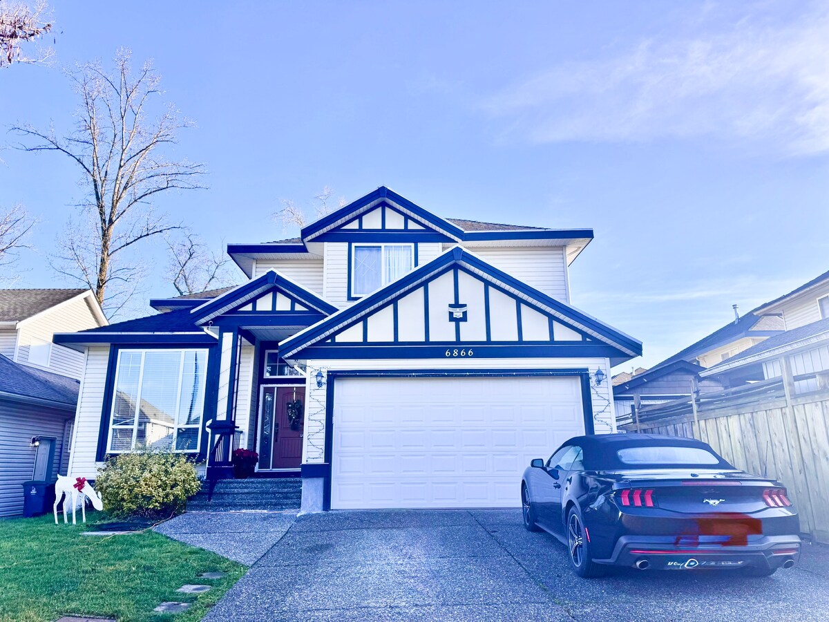 Fermer bazarına, yerli baqqal mağazasına, fastfud restoranlarına, parklara, banklara və icma mərkəzinə 5 dəqiqəlik məsafədə yerləşən sakit və lüks yaşayış ərazisində yerləşirik. Hwy 10-a yaxın yerdə yerləşən biz YVR hava limanına 25 dəqiqə, ABŞ sərhədinə 10 dəqiqə, Cloverdale rodeo-ya 5 dəqiqə və Ağ Roka 18 dəqiqə məsafədəyik. 2 yataq otağımızın ayrıca girişi, mətbəx, məişət texnikası və ləvazimatları olan mətbəx, paltaryuyan maşın+quruducu, Smart TV və Wi-Fi/kabel var. AC yoxdur.