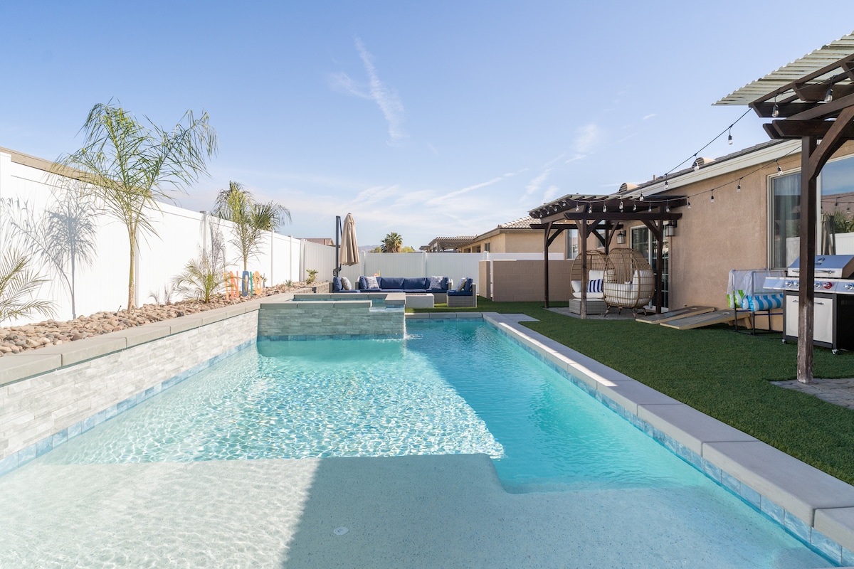 Sizi istirahət etməyə və unikal heyrətamiz arxa həyətdən, səhrada ayrıca TƏNBƏL ÇAY HOVUZUNDAN zövq almağa dəvət edirik! Resort üslubunda yaşayış. Lazy çayının tam bir dəyirmi ilə böyük hovuz, Karib təmiz su. SƏHRADA ƏN YAXŞI HOVUZ! Cakuzi, Yağış körpüsü, 'Tornado' Waterslide, aşılayıcı sevənlər üçün hovuz salonlarında dincəlmək, Hovuz basketbolu, Hovuz üzgüçülüyü, Çay boruları, Açıq Bluetooth dinamikləri, BBQ Grill və dəbdəbəli rahat açıq havada oturma və yemək yerləri.