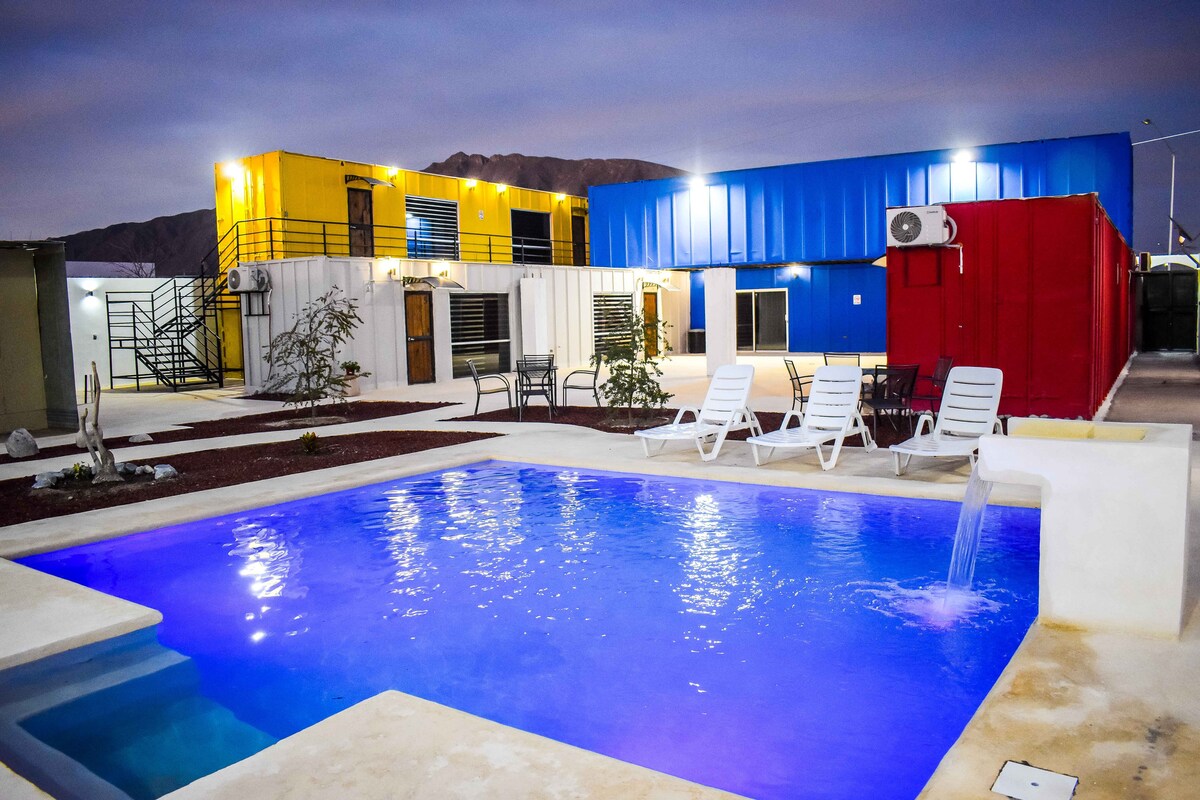 Unikal dizaynlı kənd evi Cimenez, Coahuila-da Piedras Negras-a 40 dəq. Rahat və rahat qonaqlama üçün hazır olan 40ft göndərmə konteyneri. Müasir, lakin köntöy interyerləri ilə əsasən təkrar emal edilmiş materiallar və digər ekoloji xüsusiyyətlər.