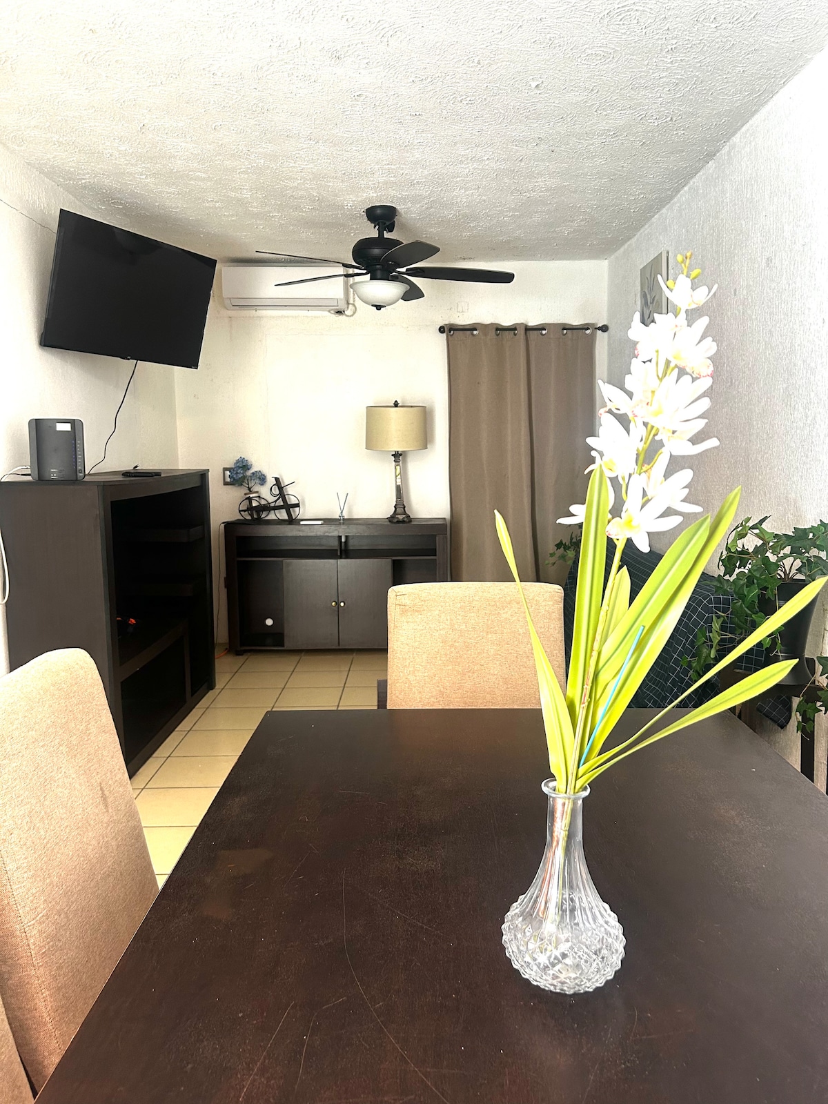 Şəhərin ən yaxşı yerində yerləşən 4 yataq otağı, 3,5 vanna otağı, qapalı qaraj 2 nəqliyyat vasitəsi olan ev; əsas yollara asan giriş. Hər yataq otağında kondisioner, roku tv və ventilyator; təchiz olunmuş mətbəx; paltaryuyan və quruducusu olan camaşırxana; fiber optik internet 100 meqabayt; divan çarpayısı, masa, ventilyator və ağıllı televizoru olan qonaq otağı; yemək otağı və ventilyatorları olan hamam otaqları; barbekü olan arxa həyət; açar kilidi; digər imkanlar. Qonaq otağında AA, yalnız yataq otaqları yoxdur. Qaimə