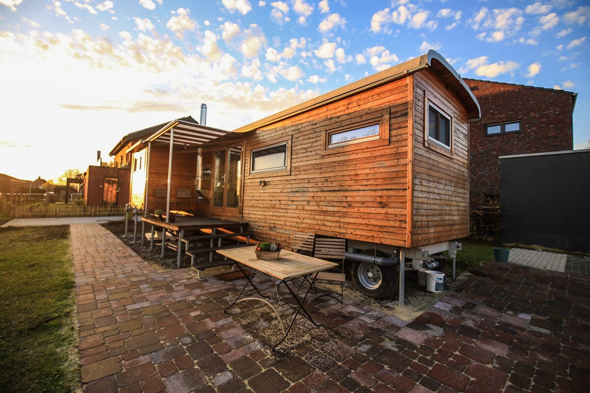 In unserem "Wohlwagen" ist der Name Programm: Reinkommen-wohlfühlen. Im nach Holz duftenden Tinyhouse kannst du mit Blick auf den Fluss und die Pferdewiese entspannen ohne auf Komfort (z. B. Spülmaschine) verzichten zu müssen. Die Klimaanlage beschert dir deine individuelle Wunschtemperatur. Stadtrandlage; ein Bäcker und ein Restaurant sind fußläufig zu erreichen. 2 km bis zum Marktplatz. Edeka und Aldi sind 1 km entfernt, ein 2. Bäcker ist ca. 800m entfernt.