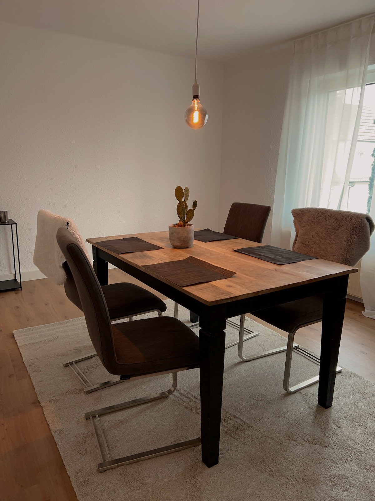Herzlich Willkommen im Herzen des Westmünsterlandes! Wir bieten unsere gemütliche Dachgeschosswohnung im 1. Stock an. Über die Außentreppe erreicht ihr den privaten Eingang und gelangt über Flur direkt ins Wohnzimmer mit angrenzendem Essbereich und Küche, die zum kochen einlädt. Die Couch bietet Euch eine weitere Schlafgelegenheit. Ein voll ausgestattetes Badezimmer und ein ruhiges Schlafzimmer runden die Wohnung ab. Parkplätze sind direkt am Haus verfügbar Wir freuen uns auf eure Anfragen
