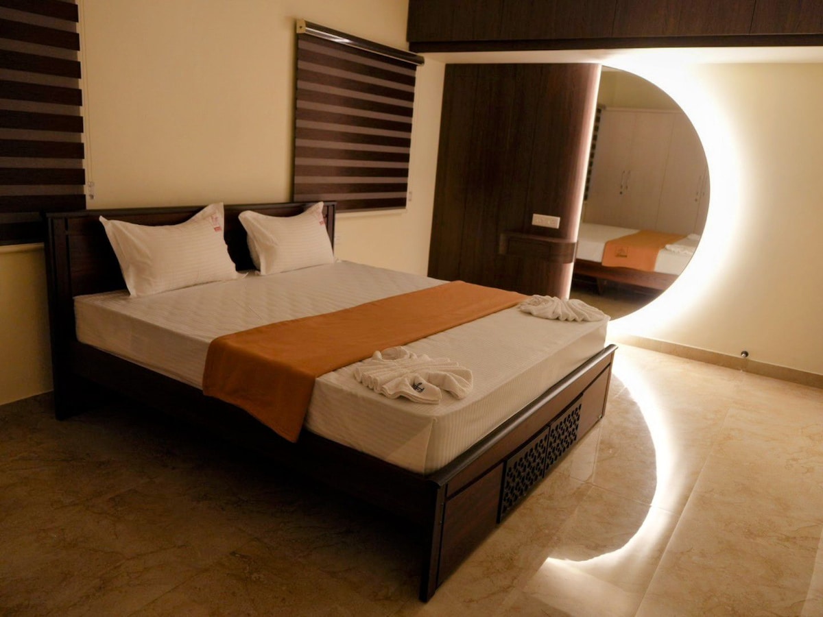 Coimbatore şəhərində beynəlxalq səyahətçilər, işgüzar qonaqlar və qısa və ya uzunmüddətli qonaqlamalar üçün ideal olan premium 2BHK xidmətli mənzil olan Amaira Studio Living-ə xoş gəlmişsiniz. Hava limanının yaxınlığında təmiz, ayrıca, otel tipli qonaqlamanın dadını çıxarın. *Beynəlxalq qonaqlar qəbul edilir *Yüksək sürətli Wi-Fi * Kondisionerli otaqlar * Hamam otağını isti su ilə təmizləyin * Təhlükəsiz, sakit yaşayış sahəsi * Öz-özünə giriş mövcuddur Mövqe Koimbatore Beynəlxalq Hava Limanının yaxınlığında yerləşir, xəstəxanalara, istirahət yerlərinə və restoranlara asanlıqla gedə bilərsiniz.