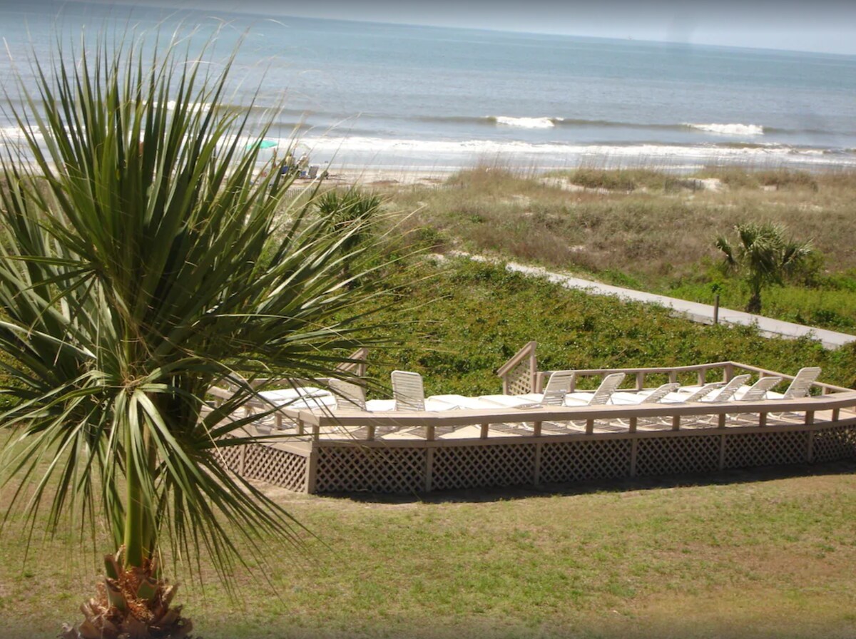 Just steps to the sand, this cozy coastal condo offers a private balcony with a side ocean view. A short walk to Coligny Plaza, a vibrant area with a variety of cute cafes, restaurants, and shops. The gated complex features a pool, sundeck, and community grill; bring your own charcoal. Fast High-speed internet, FREE WIFI, smart TVs, you're always connected. Enjoy the comforts of home with a fully stocked kitchen, a plush King bed, ideal for remote work, modern updates & included amenities.