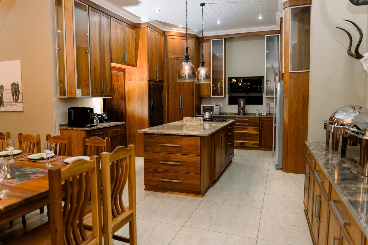 Veldjie Huis is situated in the heart of The Dinokeng Big 5 Game Reserve, embraced by nature and in a unique corner away from the noise, among South Africa's Big 5. It is the perfect space to get away from the hustle and bustle of the city and relax in the heart of nature. This is a 4 bedroom holiday home with a loft bedroom and 3 bathrooms. Bath towels are provided. Spacious open-plan kitchen, dining room, TV room, bar area, separate scullery equipped with a dishwasher and washing machine.