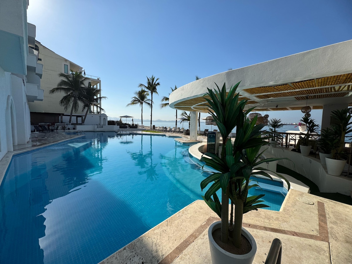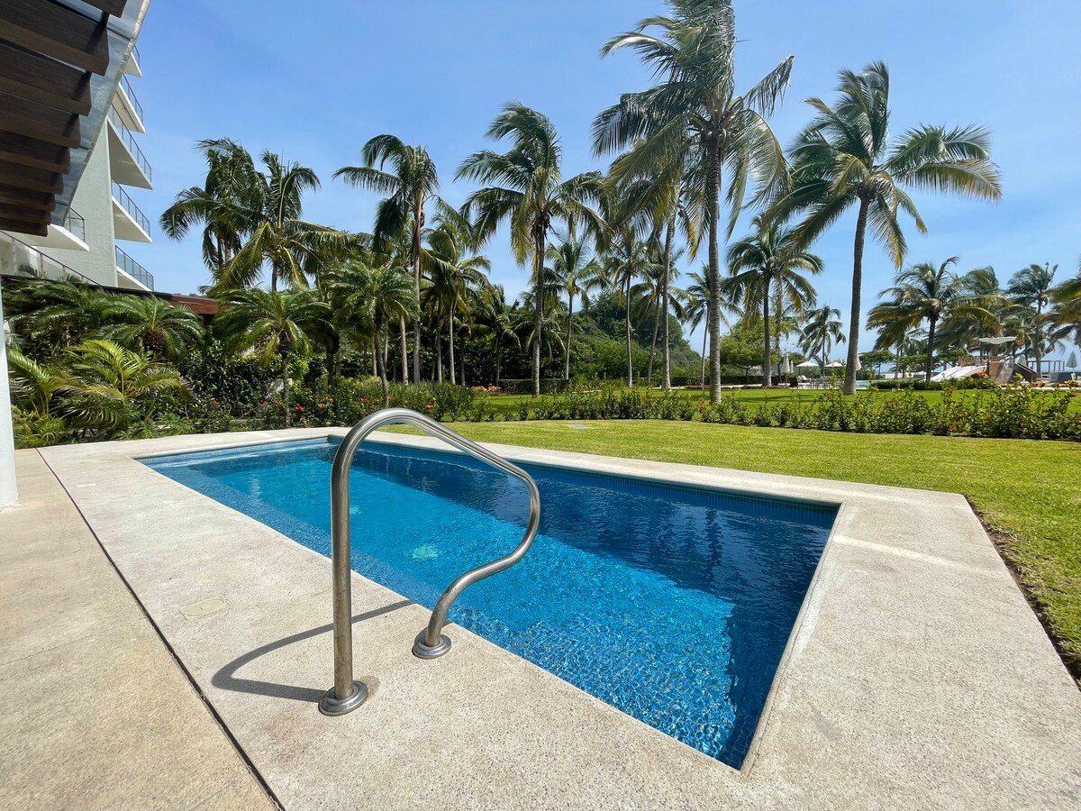 Relájate en este departamento vacacional único y tranquilo, diseñado para ofrecerte comodidad y descanso. Disfruta de una alberca privada templada dentro del alojamiento, de uso exclusivo, ideal para relajarte en cualquier momento. Cuenta con cocina totalmente equipada y espacios modernos pensados para tu confort. Además, como huésped tendrás acceso al club de playa del complejo, ubicado justo enfrente, a solo 2 minutos caminando.