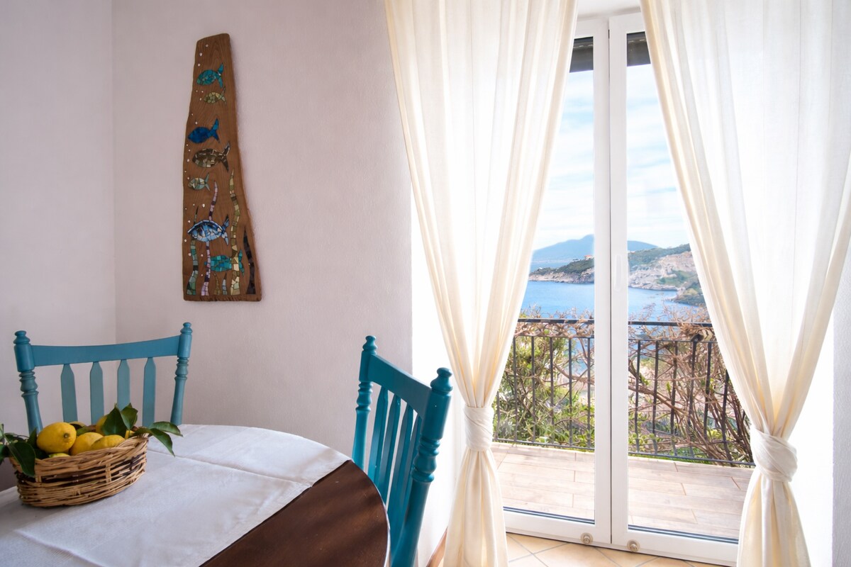 Bu yaxınlarda təmir edilmiş tətil evi Kapri və İsçiyanın heyranedici mənzərəsindən zövq alır. Şəhərin xaosundan uzaqda istirahət etmək üçün ideal yerdir. Bütün komfortlarla təchiz olunmuş mənzərəsi olan işıqlı otaqlar var. Mətbəxin qarşısında səhər yeməyi və ya şam yeməyi ilə şam yeməyi üçün idealdır. Solarium göyərtə stulları, günəş salonları, stulları olan masa, Kapriyə baxan duş ilə təchiz olunub. Çimərlikdən bir neçə km, mərkəzdən və Sorrento və Amalfi sahillərinin bütün attraksionlarından bir neçə km məsafədədir