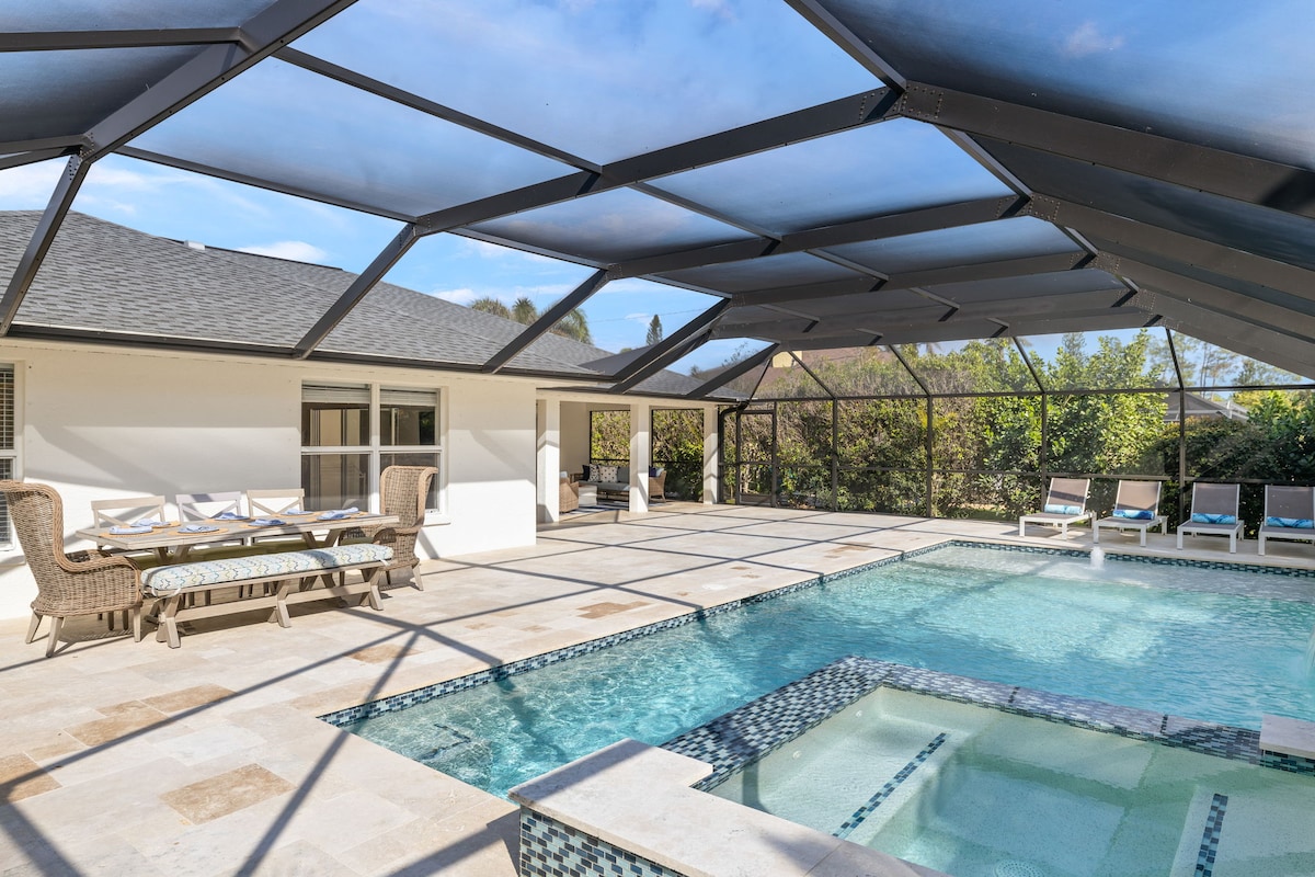 Step into the luxurious 2BR 2BA oasis in the heart of Bonita Springs, FL. It promises a relaxing retreat just a few minutes from the pristine Bonita Beach, restaurants, shops, exciting attractions, and natural landmarks. The stylish design and a rich amenity list will leave you in awe. ✔ 2 Comfortable Bedrooms ✔ Open Design Living ✔ Fully Equipped Kitchen ✔ Backyard (Pool, Hot Tub, Swim-Up Bar, BBQ) ✔ Lounge Pool House ✔ Workspace ✔ Smart TVs ✔ Wi-Fi ✔ Parking See more below!