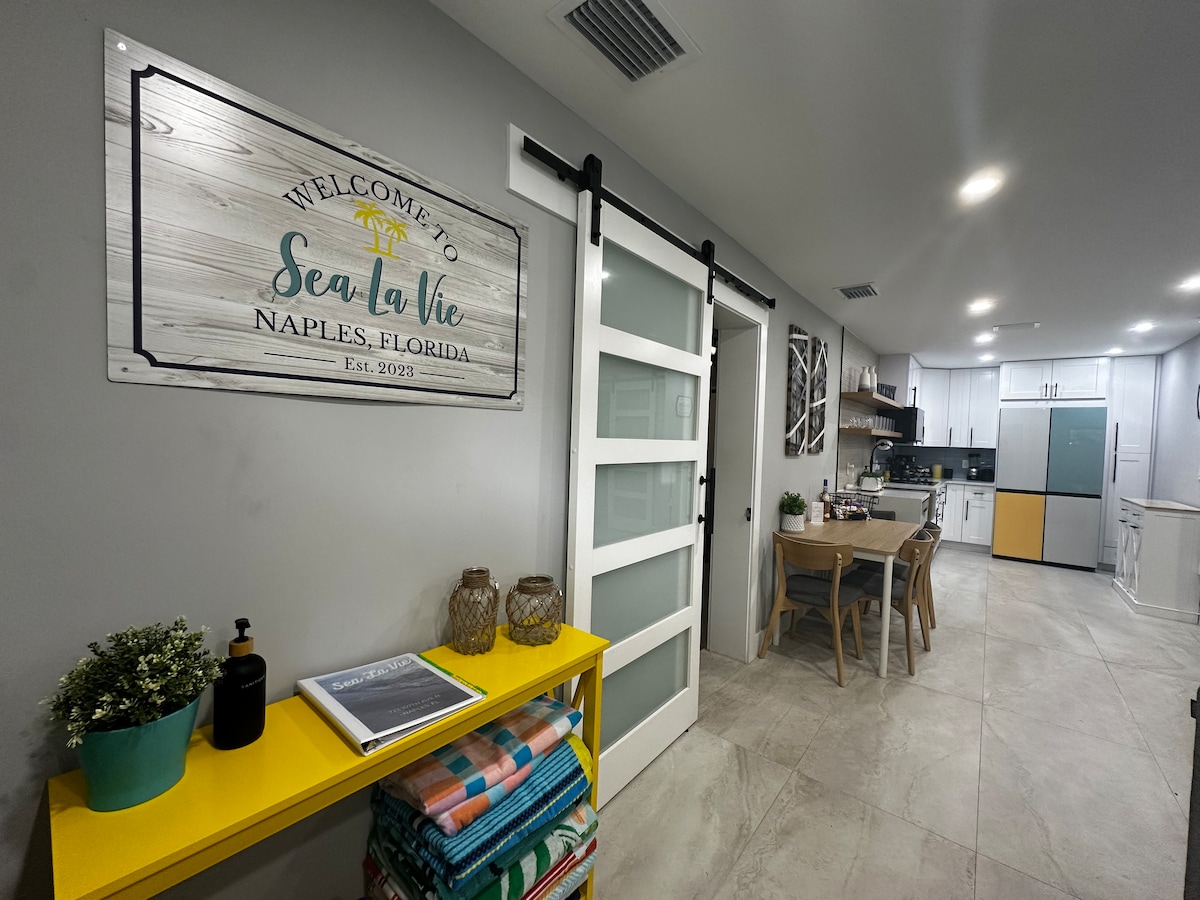 Mükəmməl Neapol tətilinizə xoş gəlmisiniz! Əla təmir edilmiş 2 otaqlı, 2 vanna otağı olan bu bitişik ev Florida ab-havası ilə müasir komfortu birləşdirir. 5-ci mkr-da mağaza və restoranlardan cəmi 2,5 mil, Neapol Çimərliyindən isə 4 mildən az məsafədə yerləşirsiniz - hər şeyin mərkəzindəsiniz. Günlərinizi günəş vannası qəbul etməyə, avar çəkməyə və ya yaxınlıqdakı yolları araşdırmağa sərf edin. Axşam saatlarında qida yük maşınlarının, canlı musiqinin və sahilyanı içkilərin gözlədiyi Şənlik Parkına sürətli velosiped sürün.