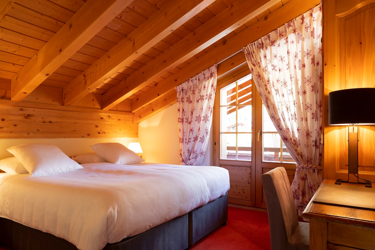 2 otaqlı mənzil - 50 kvm, balkonlu və dağ mənzərəli birinci mərtəbə. Quraşdırılmış mətbəxi və divan-çarpayısı olan qonaq otağı (140x200). İkinəfərlik çarpayısı (160x190) və ya 2 birnəfərlik çarpayısı (80x190) olan yataq otağı. İkinəfərlik çarpayısı (160x190) və ya 2 birnəfərlik çarpayısı (80x190) olan ikinci yataq otağı. Duş/vanna və tualeti olan iki hamam otağı. Wi-Fi və peyk televiziyası. Maksimum tutum: 6 böyük VƏ YA 5 böyük ayrı-ayrı çarpayılarda. Resepşn Otel Le Faucigny-də 50 m məsafədə yerləşir, 24 saat açıqdır.