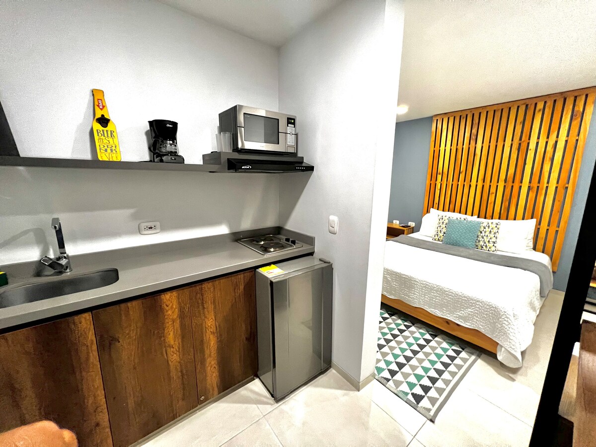 🌴🦜Themed Apartment (Tropical) in the Paz building, boutique hotel style in El Poblado🦜🌴 •Ideal apartment for medium-sized groups, all bedrooms have air conditioning, TV, and a lockable drawer. •Security personnel and security cameras monitored 24 hours a day. •Kitchen with microwave, stove, coffee maker, refrigerator, and blender. •Private underground parking. •Extras available, including chef, tours, transportation. •Prime location near Provenza.