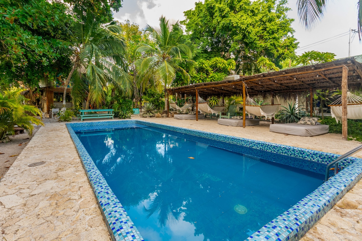Desconecta de tus preocupaciones en este espacio tan amplio y sereno. Esta habitación cuenta con una hermosa vista al mar, inspirada en Namasté y diseñada para una escapada relajante a la playa. Con una terraza privada, una entrada exclusiva, y elegantes detalles boho chic que la convierten en un lugar romántico, tranquilo y encantador.