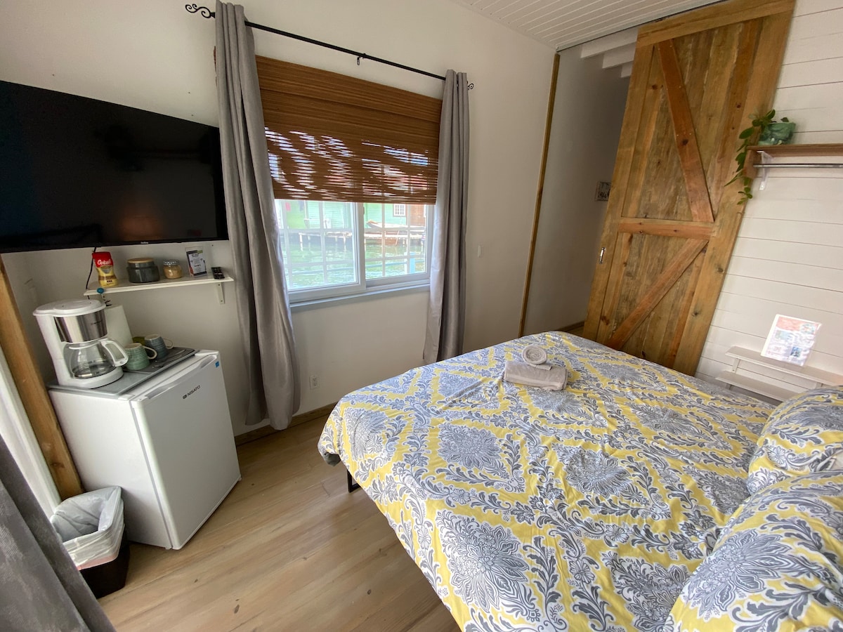 Welcome to Candyland, a vibrant and one-of-a-kind 1-bedroom + sleeper-couch apartment with a full kitchen and private bath—perfect for couples (or friends!) seeking a tranquil yet lively Caribbean escape in Bocas del Toro. Nestled in a peaceful corner of Bocas Town, this charming apartment offers a peaceful retreat just steps away from the airport, vibrant restaurants, bustling nightlife, beaches, and water taxi docks.