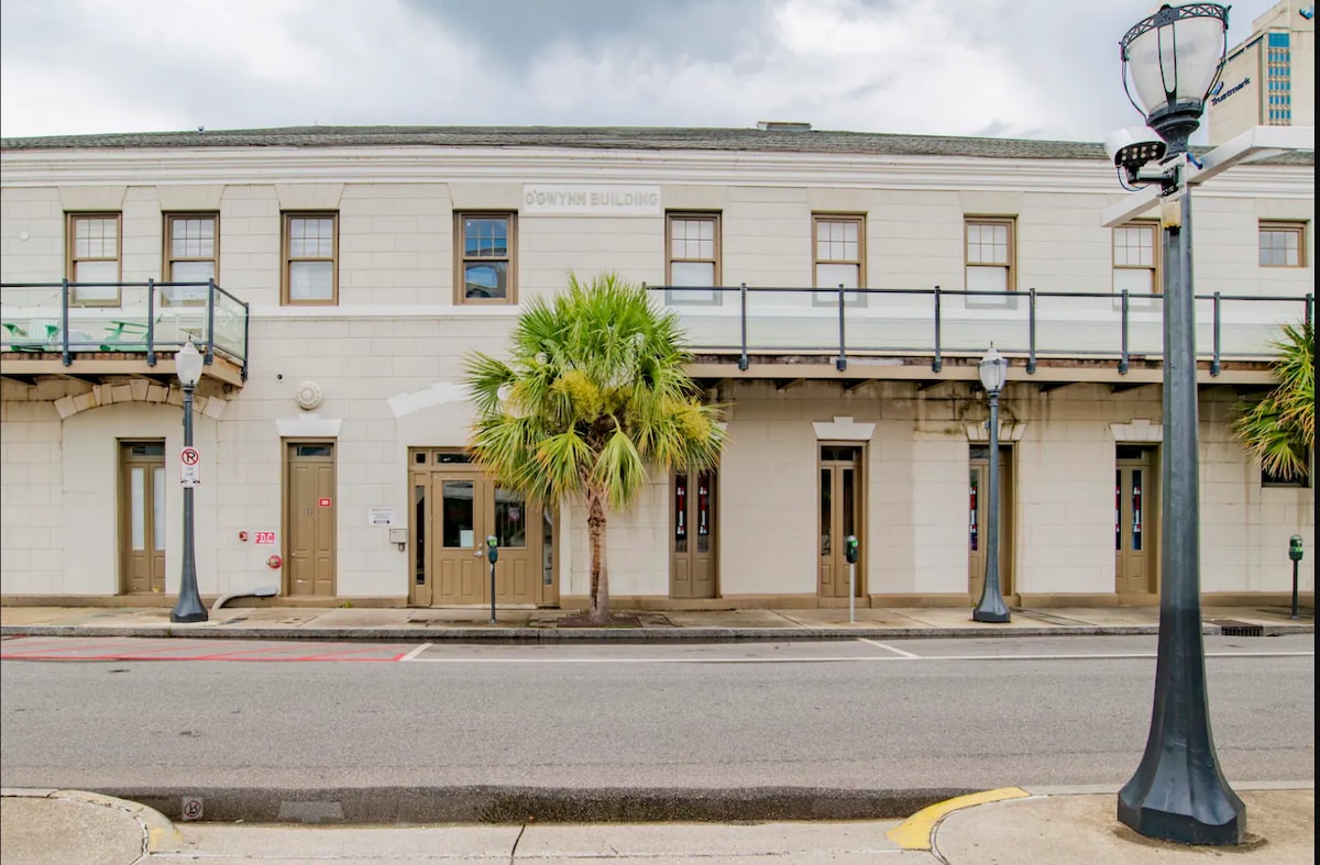 Mardi Gras üçün⚜️ Gizli Gem! Əsas parad marşrutunda! 🎭 Downtown Mobile-da yerləşən bu geniş məkan sizi şənlik və görməli yerlərin mərkəzində yerləşdirir. Səyyarənin əsl mahiyyətini kəşf etmək üçün gəzin. Əyləncə, mədəniyyət və yemək seçimlərinin cazibədar tapestryasını tapa bilərsiniz. İki yataq otağı, parlaq hamam və əlavə qonaqlar üçün açılan divan rahatlıq və komfort təklif edir. Gündüzlər canlı şəhərdə dincəlin və gecə-gündüz sakit məkanınıza qayıdın. İndi bron edin!