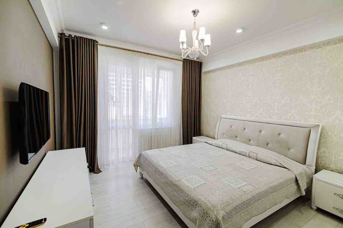 New luxury apartment in a new and quiet residential area, in the City Center with unique panorama.The apartment is comfortable and spacious, 70 m2, separate bed rooms, hall, kitchen, and bathroom with a large bathtub.The apartment has a special design with high quality furniture and household appliances. Area with developed infrastructure! In the immediate vicinity you will find: shopping and social centers, shops, pharmacies, restaurants, green area, fitness center, access to public transport