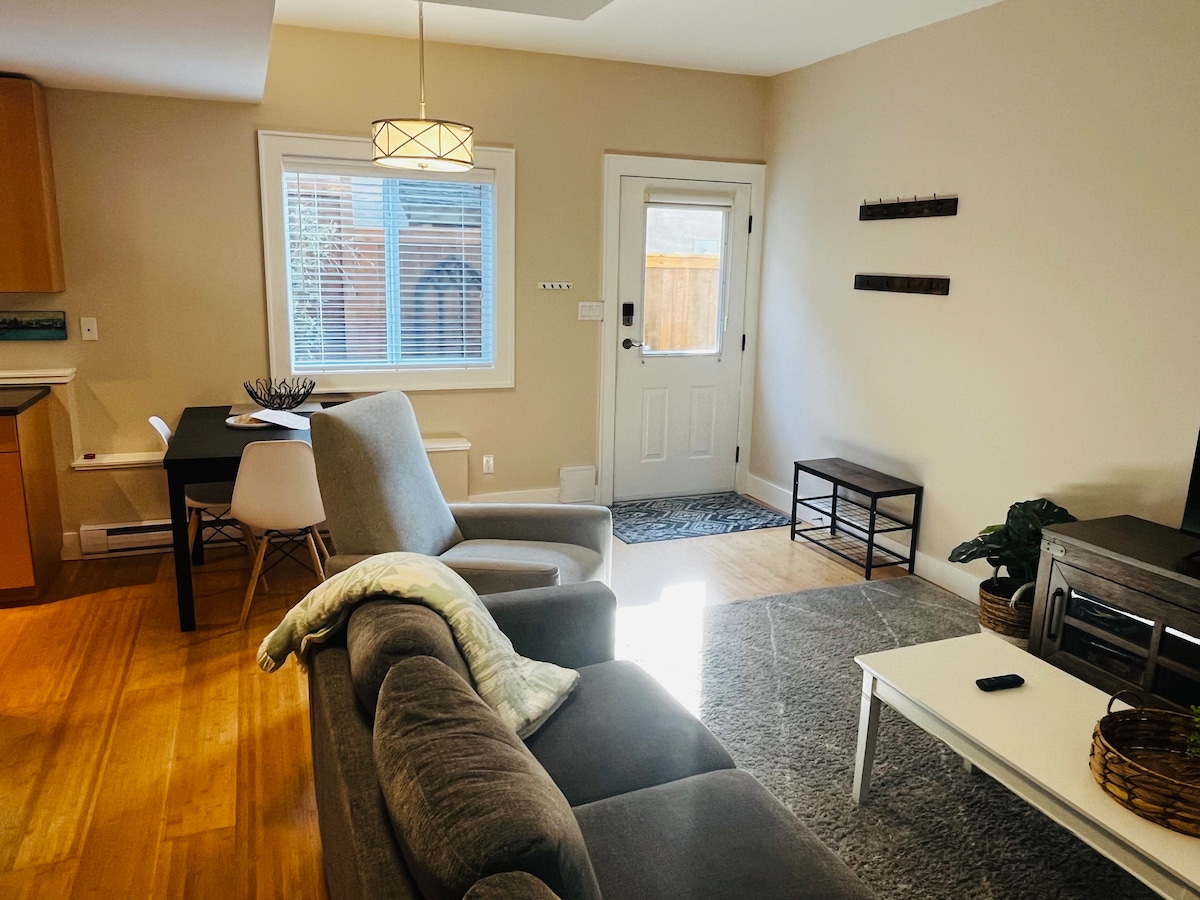Kolvudda rahat və təmir edilmiş 2 yataq otaqlı kiçik lüks mənzil! Bu işıqlı zirzəmi məkanında arxa həyətdən özəl giriş, tam təchiz olunmuş mətbəx, otaqda camaşırxana və pulsuz parkinq var. Premium king və queen ölçülü çarpayılarda rahat dincəlin və TV yayımı olan qonaq otağından zövq alın. Çöldə örtülü örtüklü, barbekü qrilləri və yanğın çuxuru olan sakit bir həyətyanı sahəyə çıxın. Mənzərəli laqun, Hetli Qəsri, Royal Roads Universitetinə piyada gedin. Rahatlıq, təbiət və rahatlıq axtaran ailələr, cütlüklər və ya uzaqdan işləyənlər üçün mükəmməldir.