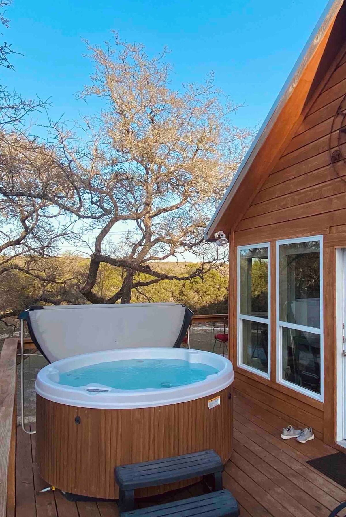 Gözəl mənzərəli Hill Country cənnətində dincəlin, cavanlaşın və daxili ruhunuzu canlandırın! Bu, ideal tətil kabinəsidir. Yuvarlanan təpələrin açıq pəncərə mənzərələri və propan yanğını çuxuru olan göyərtədə rahat, rahat, soyuq və təbiətin əhatəsində. Şəxsi cığırlarla gəzintiyə çıxın, Blanko çayına dalın, səhər mahnı quşlarına oyanın və ulduzların altında yuxuya gedin. Tənha, lakin rahat şəkildə Wimberley meydanından 5 dəqiqə və San Marcos şəhərinin mərkəzinə 20 dəqiqə məsafədə yerləşir.