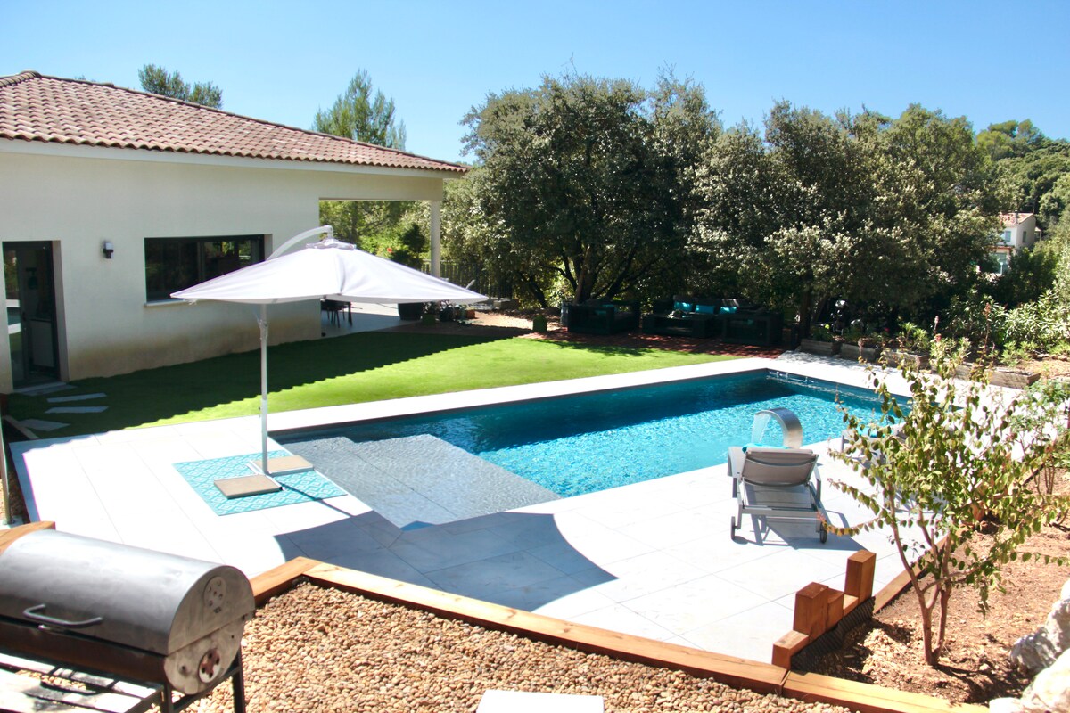 🌿 Villa calme avec piscine au cœur du village, idéale pour 10 personnes. 🏡 Maison spacieuse de 230 m² avec de grands espaces ouverts sur le jardin ☀️ Parfaite pour se retrouver en famille ou entre amis et profiter du soleil 📍 À 15 min de Montpellier, 20 min des plages et proche du lac ⚠️ Environnement résidentiel très calme : fêtes non autorisées 💡 Séjours de plusieurs nuits privilégiés ✨ Linge de maison fourni, lits faits à l’arrivée 🌙 Quartier paisible, idéal pour se reposer