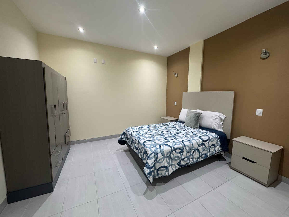 Excelente Departamento Básico, a 10 minutos del centro histórico de la ciudad, a 5 minutos de Aurrera, Chedrahui. En los alrededores encontrará Tortilleria, Tiendas con venta de Frutas y verduras, gimnasio y están a no mas de 200 metros. El espacio cuenta con una cocina básica diseñada especialmente para 2 personas y el inmueble esta protegido por Sistema de Vigilancia las 24 horas.